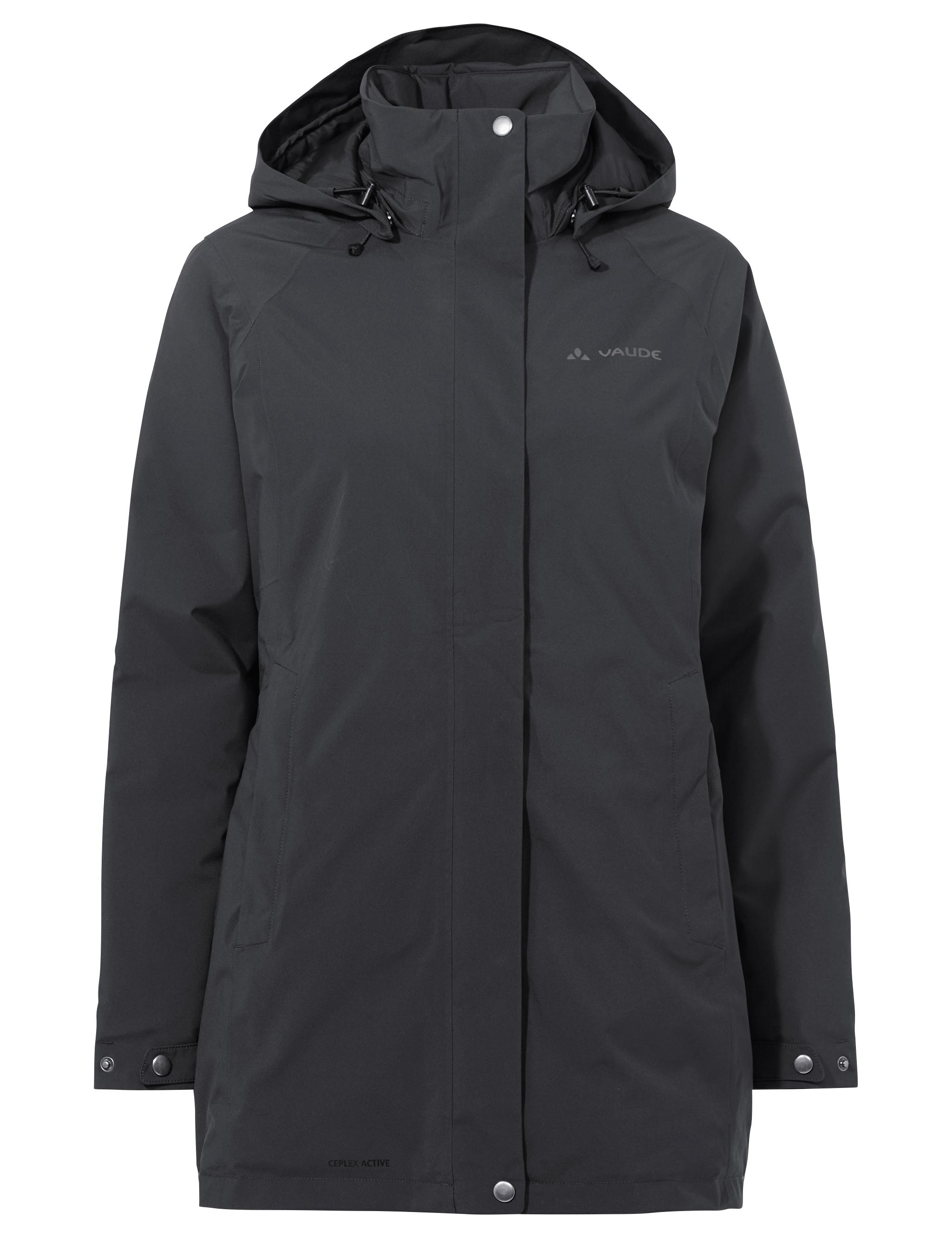 Dieser Damen Wintermantel in zeitlosem Design spielt seine Stärken vor allem in Herbst, Frühjahr und den gemäßigten Wintertagen aus. Denn er ist wasserdicht, winddicht, wattiert und atmungsaktiv - und somit optimal für Schlechtwettertage. Die Kapuze ist weitenverstellbar, die Ärmel ergonomisch vorgeformt. Die zwei vorderen Reißverschluss-Eingrifftaschen verwahren sicher Kleinigkeiten wie Taschentuch, Schlüssel oder Geldbörse. Also ein schöner Allrounder für Uni, Büro, Alltag und den Spaziergang mit Familie oder dem Hund. Zusätzlich zur wasserdichten Membran ist der Oberstoff des Damen Wintermantels mit Eco Finish wasser- und schmutzabweisend ausgerüstet. VAUDE verzichtet dabei auf Fluorcarbone, sogenannte PFAS- beziehungsweise PFC-Chemikalien, die im Verdacht stehen, gesundheitsschädlich zu sein. Als Mitglied mit Leader Status bei der unabhängigen Organisation Fair Wear engagiert sich VAUDE für faire Arbeitsbedingungen und faire Löhne. Das VAUDE Green Shape-Label steht für ein umweltfreundliches, funktionelles Produkt aus nachhaltigen Materialien.