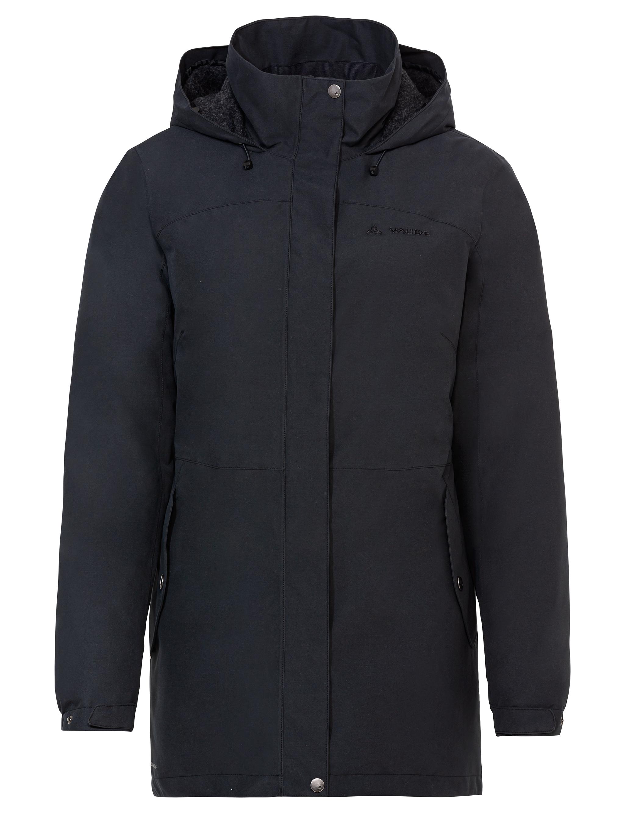 Dieser schöne Damen Parka mit Schurwolle-Anteil im Futterstoff eignet sich nicht nur für kalte Wintertage in der Stadt, sondern sorgt auch bei Winterwanderungen in der Natur für angenehme Wärme. Der Parka verfügt über eine wasserdichte Ceplex Active-Membran und eine wärmende Wattierung aus funktionellem Recyclingmaterial. Das weiche Innenfutter, die Kapuze und Ärmelabschlüsse mit Weitenregulierung sowie die Reißverschluss-Eingrifftaschen halten bei Minusgraden die Kälte zusätzlich ab. Der 2-Wege-Frontreißverschluss ist vor allem für Radpendlerinnen von Vorteil. Eine Reißverschluss-Innentasche verwahrt Handy, oder Geldbörse. Dieser Parka ist mit Eco Finish umweltfreundlich wasserabweisend ohne Fluorcarbone (PFC) ausgerüstet. Als Mitglied mit Leader Status bei der unabhängigen Organisation Fair Wear engagiert sich VAUDE für faire Arbeitsbedingungen und faire Löhne. Das VAUDE Green Shape-Label steht für ein umweltfreundliches, funktionelles Produkt aus nachhaltigen und bluesign® zertifizierten Materialien.
