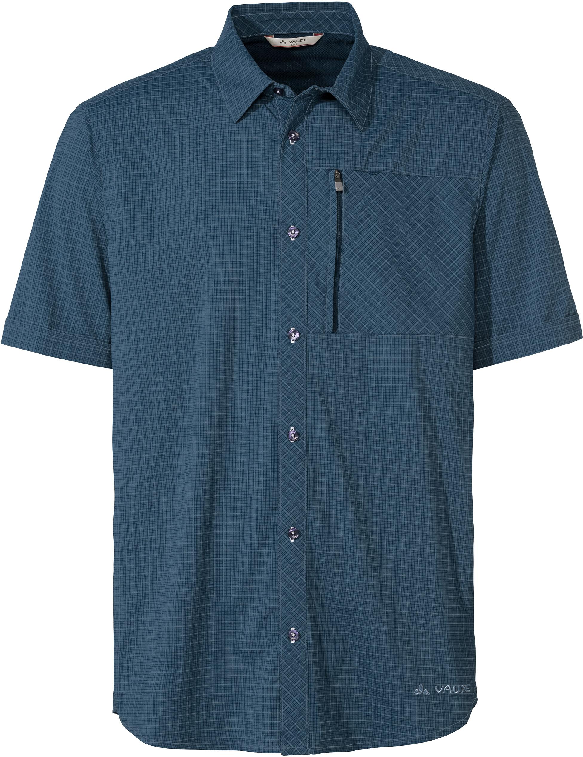 Leichtes, atmungsaktives Funktionshemd mit kurzen Ärmeln und durchgehender Knopfleiste; 1 Brusttasche mit Reißverschluss; abriebfest und angenehm elastisch; UPF 50; abgerundeter Saum; Material 90% Polyamid, 7% Elastan, 3% Polyester.
