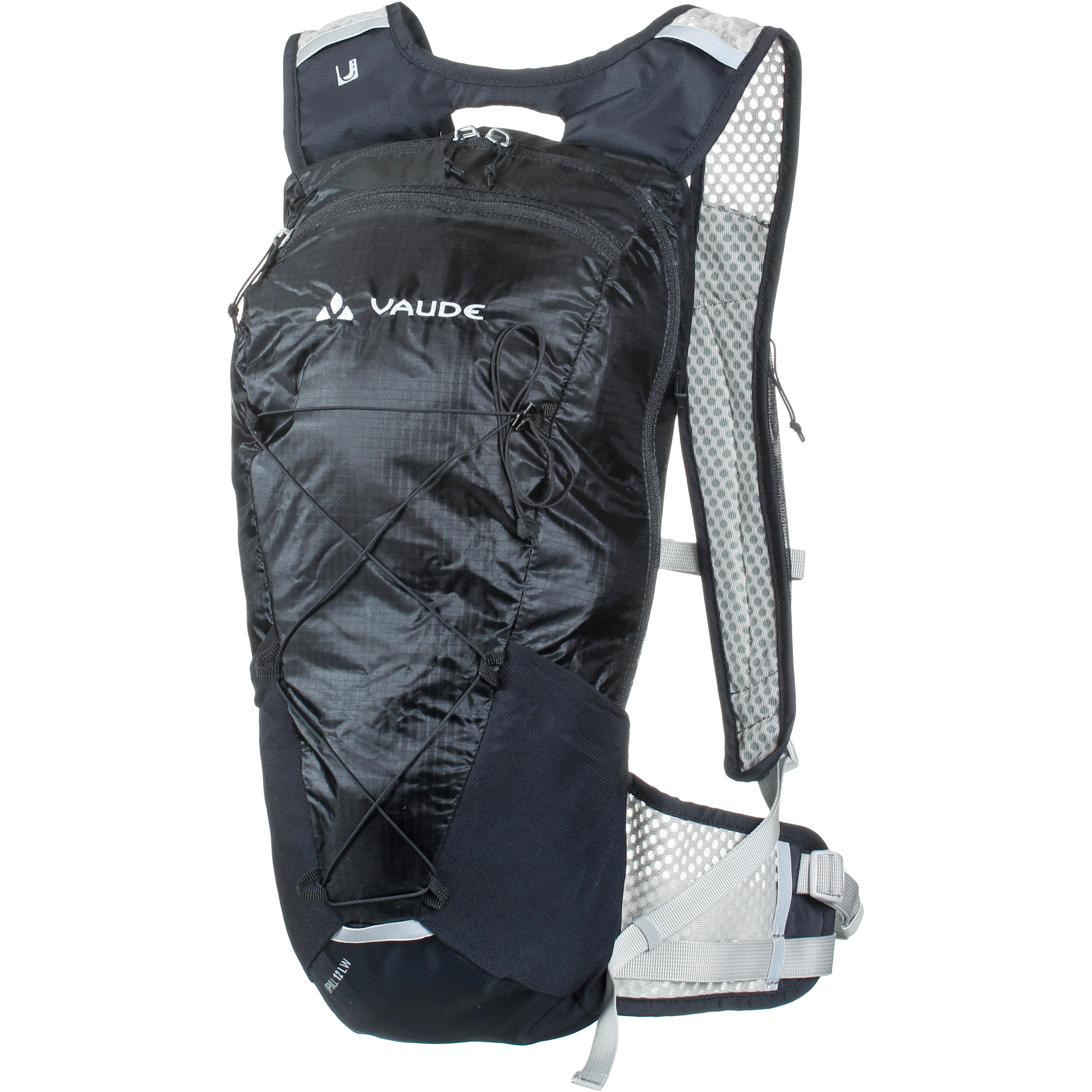 VAUDE UPHILL. Sehr leichter Fahrradrucksack mit ca. 12 l Volumen; gepolstertes Vent-Tex Ultralight-Rückensystem; verstellbare, belüftete Gurte mit Reißverschluss-Netztasche; Brustgurt; Hüftflossen; Hauptfach mit 1 Innenfach; 1 Außenfach mit Reißverschluss; 2 seitliche Netztaschen; 3 in 1 Kompressions-, Befestigungs- und Helmhalterungssystem; kompatibel mit Trinksystem; inklusive Regenhülle; Halter für Blinklicht; verstärkter Boden; reflektierende Details; Maße: ca. 46 x 22 x 17 cm; Gewicht: ca. 345 g; Fair Wear- und Green Shape-Produkt; Material 100% Polyamid.