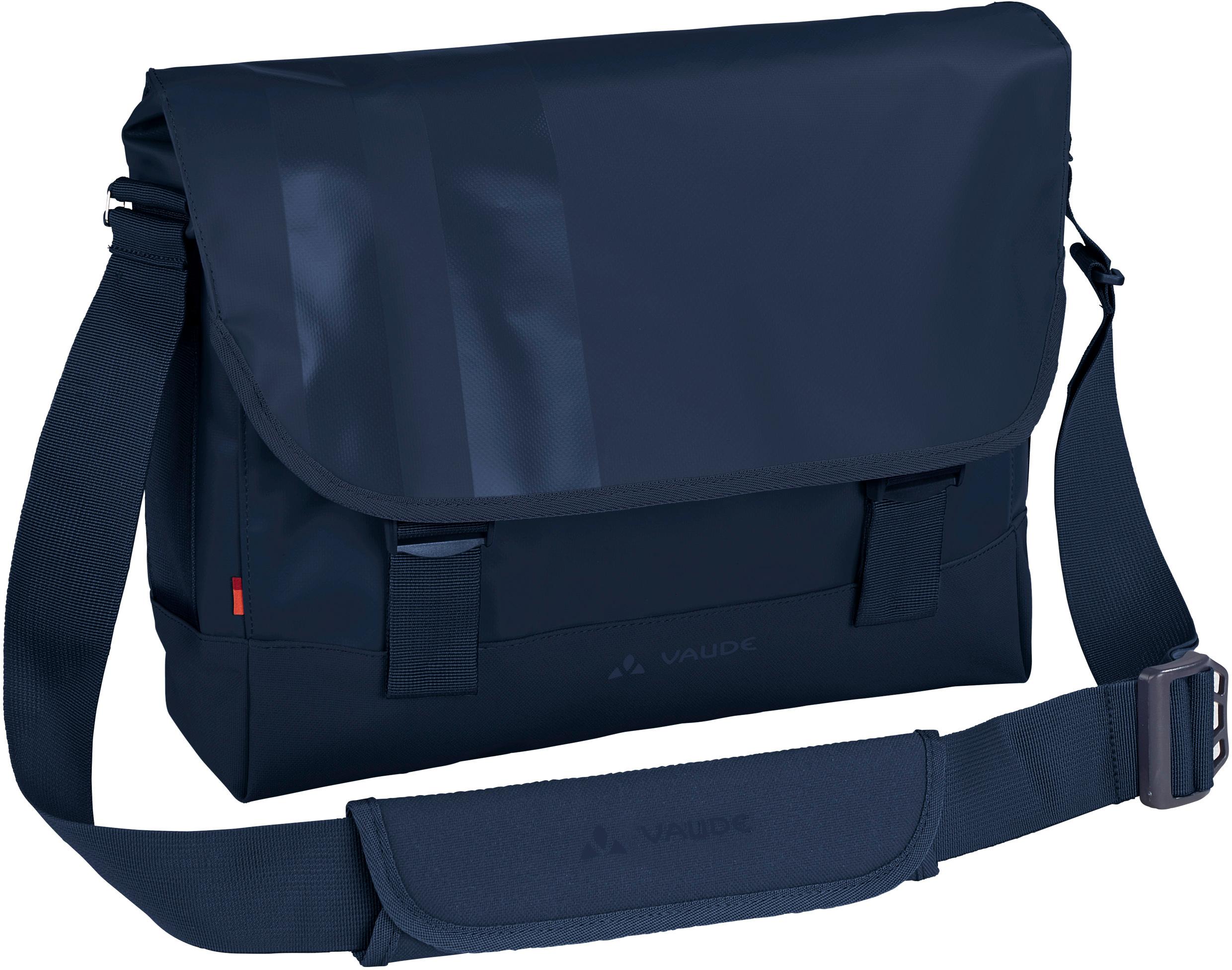 M wie goldene Mitte. Diese moderne Planentasche kommt gänzlich ohne schädliches PVC aus und verbindet Funktion mit vielen klugen Details. Ein 13.3" Laptop landet gut gepolstert im Extrafach und praktische Innenfächer bieten wohltuende Ordnung. Zwei Steckschnallen vorn sorgen für mehr Sicherheit und transportieren auch mal den Pulli oder die Yogamatte extra. Genau in die Mitte getroffen ist auch das schlichte Design, welches mit leichtem Understatement jeden Träger aus der Menge stechen lässt. Der breite Schultergurt mit wattiertem Polster ist bequem und die Aufsteckvorrichtung für Trolleys einfach nur praktisch. Das VAUDE Green Shape-Label steht für ein umweltfreundliches, funktionelles Produkt aus nachhaltigen Materialien.