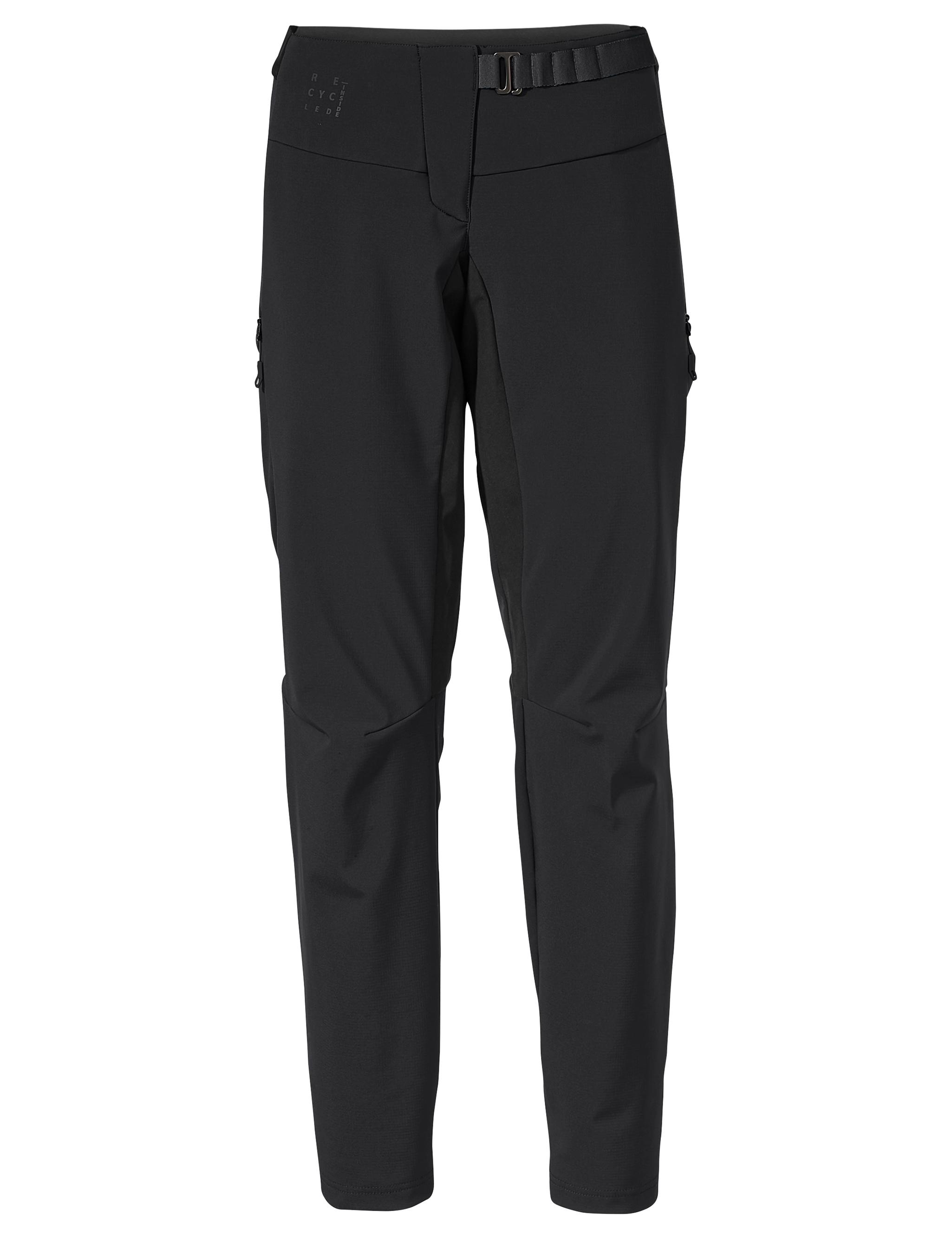 Hoch technische, hybride Damen Fahrradhose aus Softshell für progressive Fahrerinnen, die auch in Spätherbst und Winter auf anspruchsvollen Trails unterwegs sind. Die sehr bequeme, lange Softshell-Radhose für Damen kommt mit einer einfach zu verstellenden 2in1-Bundlösung, die ganz ohne Reißverschluss auskommt, wodurch nichts drücken oder zwicken kann. Der Bund der Damen Fahrradhose ist hinten höher geschnitten und elastisch. Der progressive Schnitt der vorgeformten Knie erlaubt das Fahren mit Protektoren; das Gesäß ist mit 3-Lagenmaterial verstärkt, um auch den matschigsten Trails zu trotzden. Atmungsaktive Zonen im hinteren Beinbereich, 2 mit Reißverschluss versehene Fronttaschen sowie die unten enger geschnittenen Beine mit sehr elastischen Beinabschlüssen runden dieses Technikpaket ab. Das sehr strapazierfähige Material der All Year Moab Softshell Fahrradhose schützt zuverlässig vor Auskühlung und ist mit Eco Finish PFC-frei wasser- und schmutzabweisend ausgerüstet. Und sollte doch einmal etwas kaputtgehen, sind die Hosen durch den Verzicht auf einen Frontreißverschluss leicht reparierbar. Das VAUDE Green Shape-Label steht für ein umweltfreundliches, funktionelles Produkt aus nachhaltigen und zertifizierten Materialien.