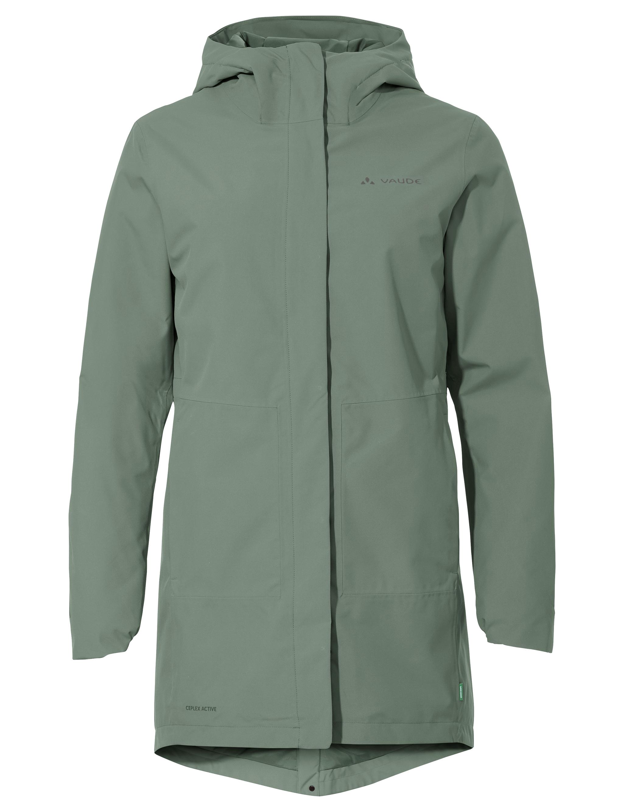 Mit diesem warmen Bike-Winterparka hast du einen echten Tausendsassa für die Stadt. Dieser Wetterschutzparka ist perfekt fürs Rad - mit Schlitz hinten und 2-Wege-Reißverschluss vorne sowie reflektierenden Elementen an Ärmeln und Rücken. Eine leichte PrimaLoft® Black Eco Wattierung sorgt dabei für angenehme Wärme. Auch wenn es stürmt, regnet oder schneit - die in den Mantel eingearbeitete Ceplex Active® Membran hält dich bei der täglichen Fahrt zur Arbeit trocken. Der Women's Cyclist padded Parka II ist mit Eco Finish umweltfreundlich wasserabweisend ohne Fluorcarbone (PFC) hergestellt. Das VAUDE Green Shape-Label steht für ein umweltfreundliches, funktionelles Produkt aus nachhaltigen und bluesign® zertifizierten Materialien.
