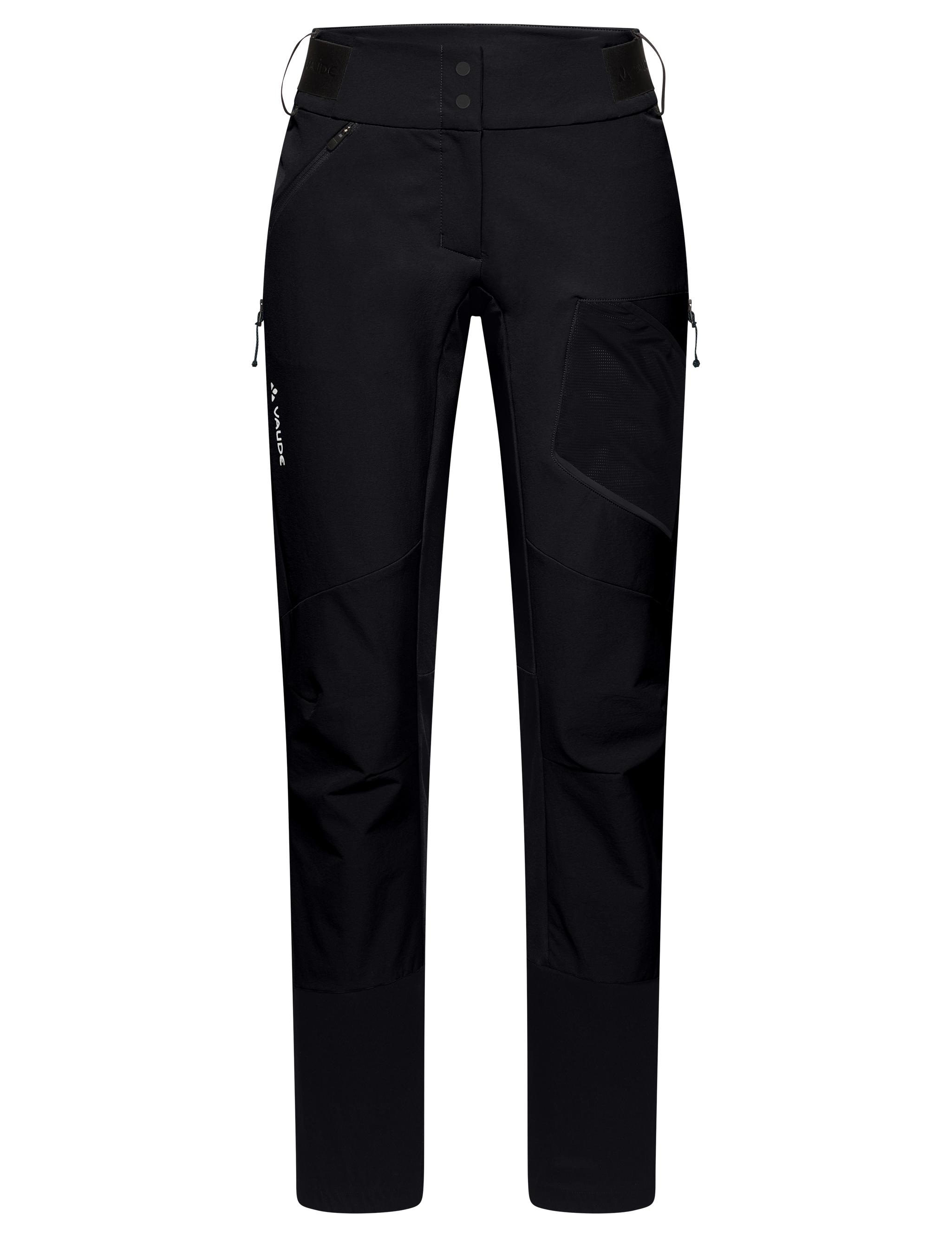 Für aufstiegsorientierte Skitourengeherinnen: Diese schmal geschnittene, äußerst leichte Damen Softshellhose sorgt dank ihrer verschiedenen Materialzonen und Belüftungsmöglichkeiten für ein optimales Körperklima bei schnellen Winteraktivitäten. In den Kniekehlen und im Schritt sorgt besonders stretchiges Fleecematerial für zusätzliche Belüftung und Unterstützung der Bewegungsfreiheit. Zum Schutz vor Skikanten und Steigeisen ist der Beinabschluss mit robustem Cordura® verstärkt. Ein Reißverschluss an den hinteren Beinenden erleichtert das An- und Ausziehen und ermöglicht die perfekte Anpassung an jeden Schuh. Der elastische Einsatz des Komfortbundes mit Gürtelschlaufen gewährleistet eine perfekte Passform. Eine Reißverschlusstasche am Oberschenkel bietet Platz für Smartphone oder Geldbeutel, während die aufgesetzte Netztasche schnellen Zugriff auf Riegel oder Taschentücher bietet. Die Skitourenhose für Damen ist mit Eco Finish umweltfreundlich wasserabweisend und PFC frei ausgerüstet. Das VAUDE Green Shape-Label steht für ein umweltfreundliches, funktionelles Produkt aus nachhaltigen Materialien.