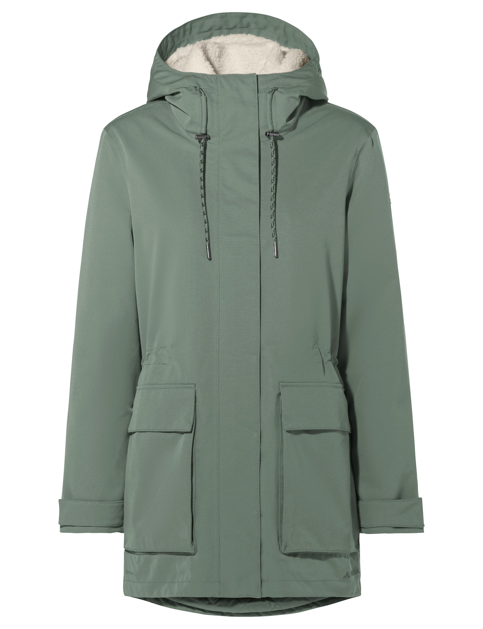 Beliebter und bewährter Dauerbegleiter in der kalten Jahreszeit: der urbane, wind- und wasserdichte Damen Parka Manukau! Ein zuverlässig warmer Damen Parka mit kuschelig weichem Sherpafleece am Kragen und in der Kapuze sowie einer edel gesteppten, warm wattierten Innenseite. Weiche Rippbündchen an den Armabschlüssen halten an eisig kalten Tagen den Wind ab und der Kordelzug an der Kapuze umschließt den Kopf bei Sturm und Regen. Der Damen Parka ist gerade geschnitten, kann aber dank Kordelzug in der Taille figurbetont zusammengezogen werden. Die geräumigen, praktischen Eingrifftaschen haben eine Doppelfunktion: Kleinutensilien und Hände können unabhängig voneinander sowohl von oben über die Lasche als auch in den seitlichen Reißverschluss-Taschen verstaut werden. Die atmungsaktive, wind- und wasserdichte Membran und der zeitlose Look machen diesen Damenparka zu einem urbanen Winterbegleiter für viele Jahre. Dieser Parka wurde mit Eco Finish umweltfreundlich wasser- und schmutzabweisend ohne Fluorcarbone (PFC) ausgerüstet. Das VAUDE Green Shape-Label steht für ein umweltfreundliches, funktionelles Produkt aus nachhaltigen Materialien.