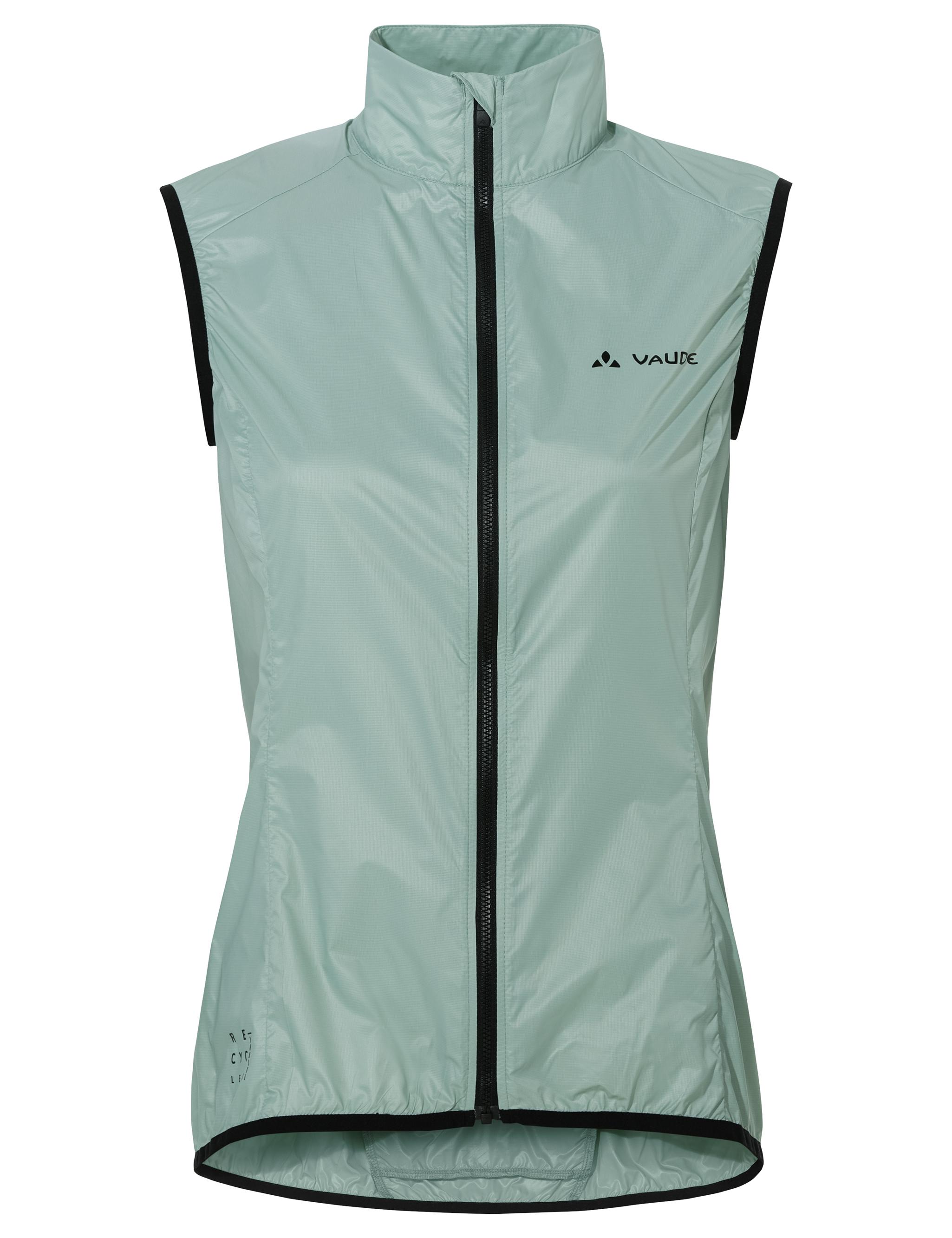 Die Matera Fahrradweste bietet ambitionierten Radfahrerinnen hervorragenden Windschutz bei allen Ausfahrten. Die Damen Windjacke ist mit 82 g ausgesprochen leicht und lässt sich in der eigenen Rückentasche klein und platzsparend verstauen. Die körpernah geschnittene Radweste sorgt mit ihrem luftdurchlässigen und elastischen Mesh-Einsatz im Rücken für beste Bewegungsfreiheit und hervorragende Belüftung. Das recycelte, windabweisende Hauptmaterial ist mit EcoFinish wasser- und schmutzabweisend ausgerüstet, sehr atmungsaktiv und trocknet schnell. Reflektierende Logos und die elastischen Arm- und Bundabschlüsse runden die Allroundweste für Damen komfortabel ab. Das VAUDE Green Shape-Label steht für ein umweltfreundliches, funktionelles Produkt aus nachhaltigen und bluesign® zertifizierten Materialien. Als Mitglied mit Leader Status bei der unabhängigen Organisation Fair Wear engagiert sich VAUDE für faire Arbeitsbedingungen und faire Löhne.