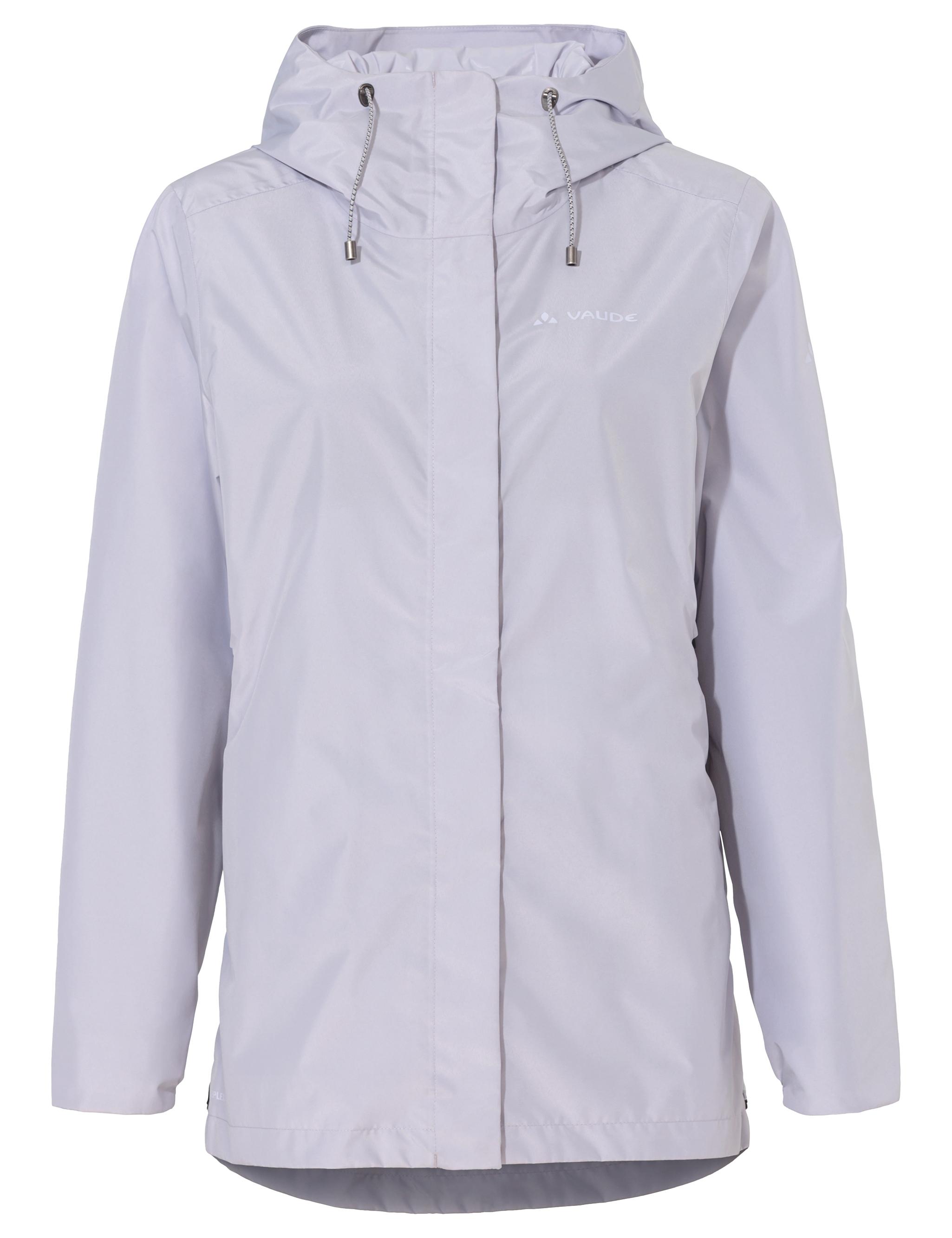Modische, länger geschnittene Wetterschutzjacke für Damen. Das wind- und wasserdichte Material schützt zuverlässig bei Regen und Schlechtwetter, die atmungsaktive Membran der Women's 2L Jacket sorgt für ein angenehmes, ausgeglichenes Körperklima. Die komplette Jacke kann klein in ihrer eigenen Innentasche verpackt werden - und passt somit in jede Tasche oder in den Reisetrolley. Ein leichter, vielseitiger Stadtbegleiter, der dank durchdachter Details wie 2-Wege-Reißverschluss, reflektierenden Druckelementen und Belüftungsschlitzen auch prima für den täglichen Radweg verwendet werden kann. Das bluesign® zertifizierte Hauptmaterial besteht aus überwiegend recyceltem Polyester, was unsere Ressourcen schont. Das VAUDE Green Shape-Label steht für ein umweltfreundliches, funktionelles Produkt aus nachhaltigen Materialien.