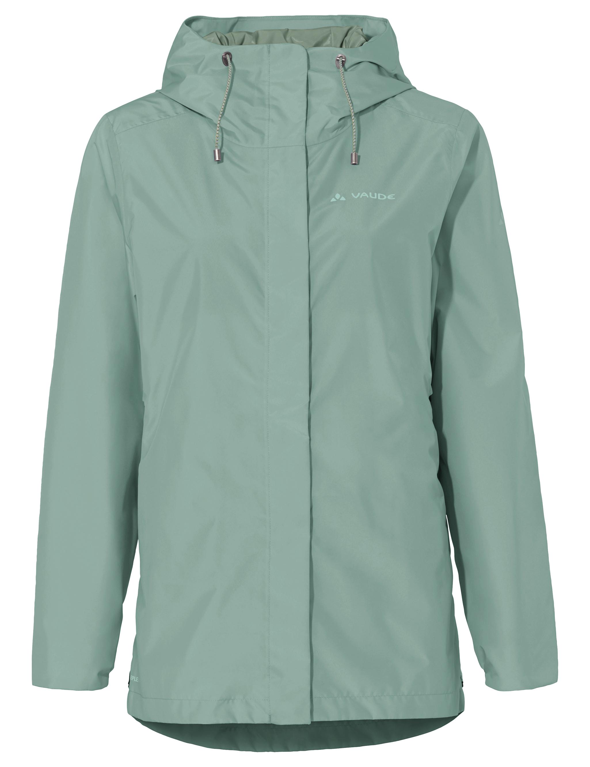 Modische, länger geschnittene Wetterschutzjacke für Damen. Das wind- und wasserdichte Material schützt zuverlässig bei Regen und Schlechtwetter, die atmungsaktive Membran der Women's 2L Jacket sorgt für ein angenehmes, ausgeglichenes Körperklima. Die komplette Jacke kann klein in ihrer eigenen Innentasche verpackt werden - und passt somit in jede Tasche oder in den Reisetrolley. Ein leichter, vielseitiger Stadtbegleiter, der dank durchdachter Details wie 2-Wege-Reißverschluss, reflektierenden Druckelementen und Belüftungsschlitzen auch prima für den täglichen Radweg verwendet werden kann. Das bluesign® zertifizierte Hauptmaterial besteht aus überwiegend recyceltem Polyester, was unsere Ressourcen schont. Das VAUDE Green Shape-Label steht für ein umweltfreundliches, funktionelles Produkt aus nachhaltigen Materialien.