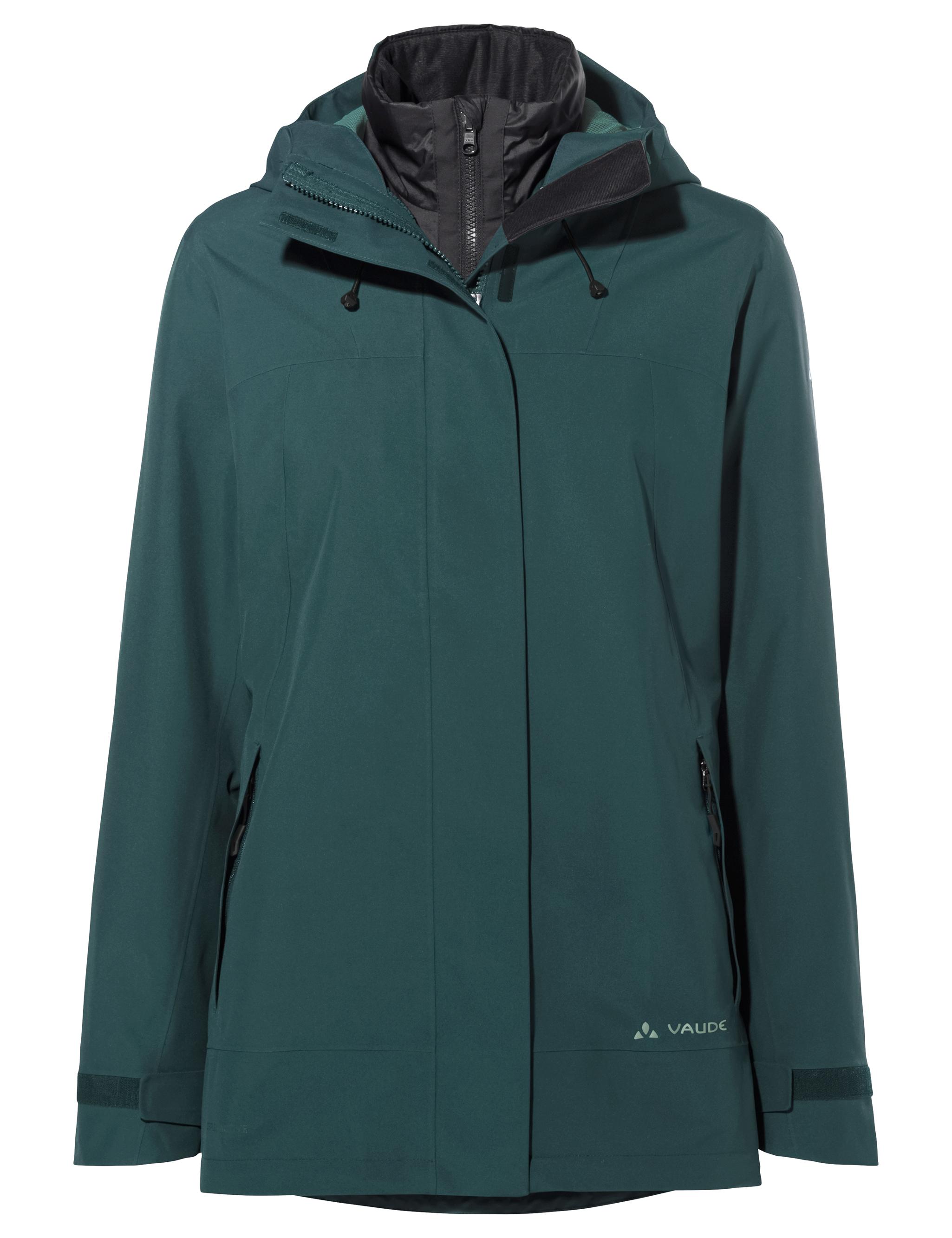 Für alle, die eine Allround-Jacke für Herbst und Winter suchen ist die Neyland Doppeljacke für Damen das Mittel der Wahl: Die Außenjacke ist wind- und wasserdicht und hält Regen und Schnee locker stand. Die atmungsaktive Membran sorgt für komfortables Körperklima. Mit Kapuze und hohem Kragen. Zudem verfügt die Damen Doppeljacke über verstellbare Ärmelbündchen, die je nach Wetterlage individuell eingestellt werden können. Die beiden Fronttaschen und die Brusttasche mit Reißverschluss bieten zudem Platz für jede Menge Kleinigkeiten. Die Innenjacke ist eine mit recyceltem Polyester gefütterte Isolationsjacke, die auch bei eisigen Temperaturen bestens warm hält. Sie hat mehrere Taschen und kann problemlos solo getragen werden - in der Übergangszeit im Alltag oder in den Bergen. Mit ihrem lässigen und modernen Design macht die Damen Doppeljacke immer eine gute Figur. Dieses Produkt ist mit Eco Finish umweltfreundlich wasserabweisend ohne Fluorcarbone (PFC) hergestellt. Das VAUDE Green Shape-Label steht für ein umweltfreundliches, funktionelles Produkt aus nachhaltigen Materialien.