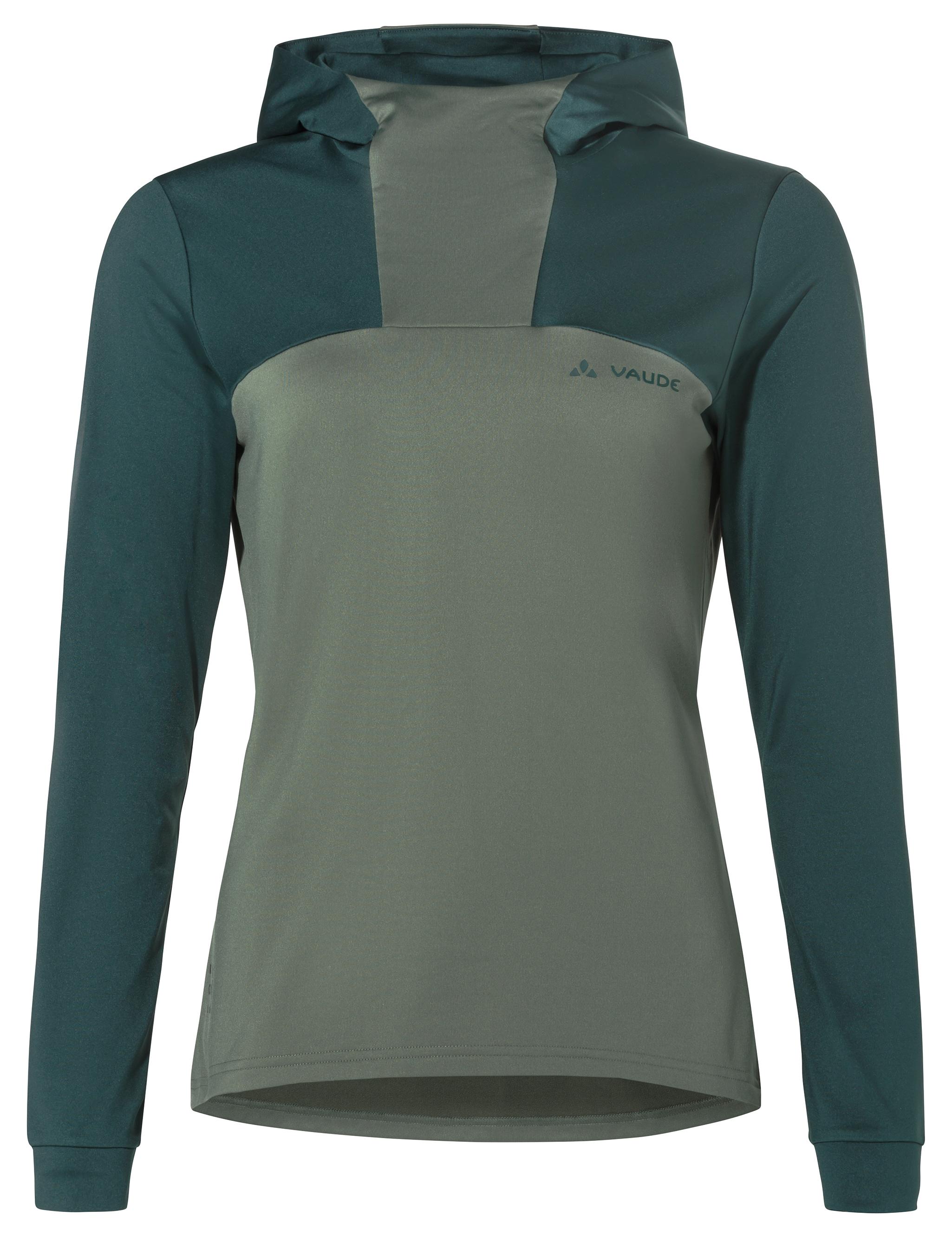 Egal ob unter der Jacke oder solo an kühlen Tagen – Bikerinnen werden den Qimsa Fahrrad Hoodie lieben! Das elastische Material schafft eine tolle Bewegungsfreiheit, vorgeformte Ärmel und ein länger geschnittener Rücken sind auf die Körperhaltung auf dem Rad angepasst. Vor starkem (Fahrt-)Wind schützen der Kragen mit integrierter Multifunktionstuch-Funktion und die Kapuze. Letztere liegt eng am Kopf an und kann so bequem unter dem Helm getragen werden. Innen ist das Fleece-Material leicht angeraut – das unterstützt die Atmungsaktivität, den Wärmerückhalt und sorgt für ein kuscheliges Tragegefühl. Neben dem Einsatz bei den unterschiedlichsten Mountainbike- und Radausflügen überzeugen die Eigenschaften des Qimsa Fahrrad Hoodie für Damen natürlich auch bei Ski- und Bergtouren. Das VAUDE Green Shape-Label steht für ein umweltfreundliches, funktionelles Produkt aus nachhaltigen Materialien. Als Mitglied mit Leader Status bei der unabhängigen Organisation Fair Wear engagiert sich VAUDE für faire Arbeitsbedingungen und faire Löhne.