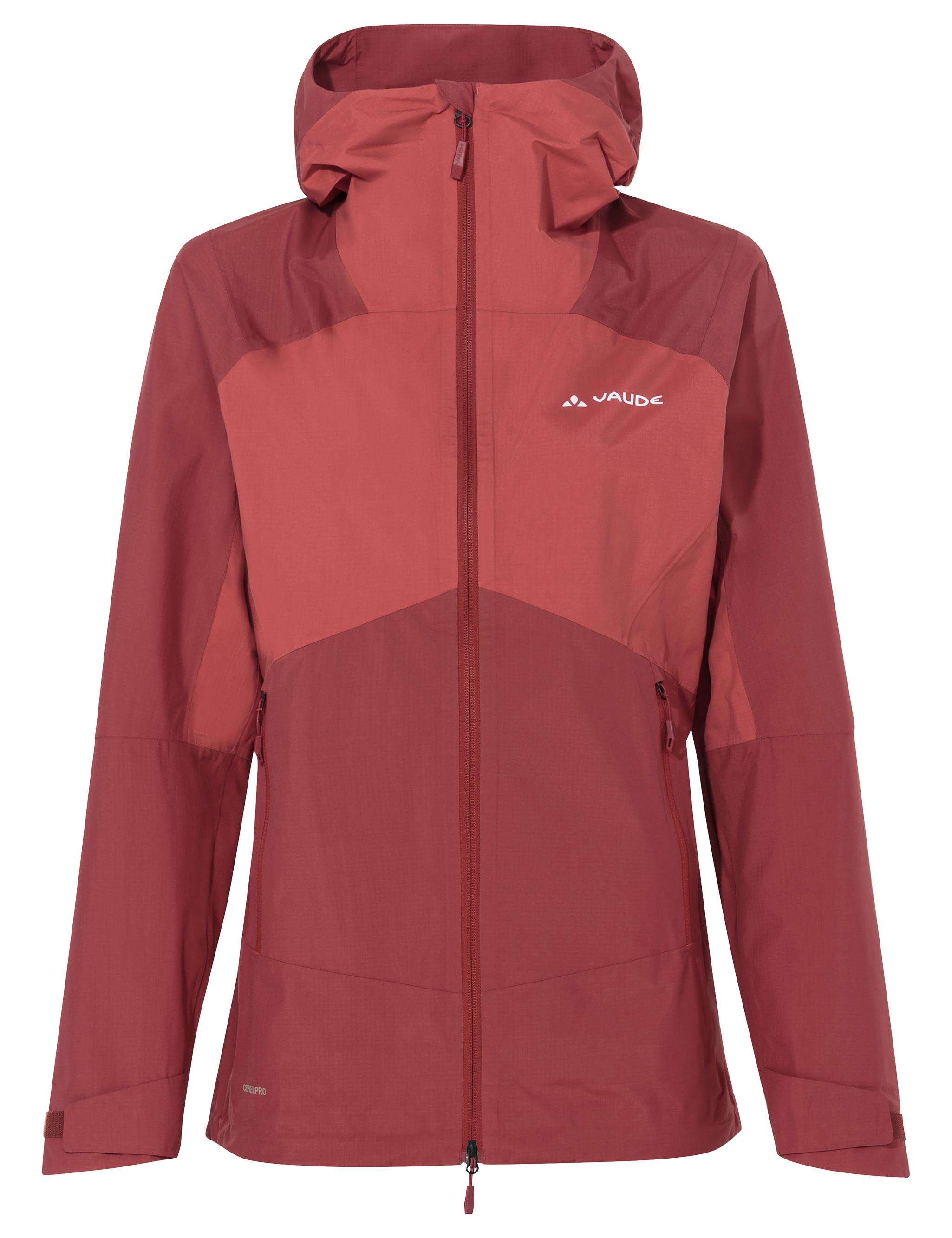 Auch im Sommer gehört bei jeder Bergtour eine Regenjacke ins Gepäck. Sie schützt nicht nur bei plötzlichen Gewittern oder Regenschauern, sondern auch vor frischem Wind am Gipfel und dem Auskühlen während der Pause. Die Simony V 2,5-Lagen-Regenjacke für Damen hält einer Wassersäule von mindestens 20.000 Millimetern stand (JIS L 1092 B) und ist dabei extrem atmungsaktiv. Dank ihrer Konstruktion – Oberstoff und Membran sind fest miteinander verklebt, statt eines zusätzlichen Futters schützt ein Print (halbe Lage) die Membran – ist die Simony V extrem leicht und klein verpackbar. Zusätzlich zur wasserdichten Membran ist der Oberstoff der Simony 2,5-Lagen-Regenjacke für Damen mit Eco Finish PFC-frei wasser- und schmutzabweisend ausgerüstet. Die vorgeformten Ärmel gewähren maximale Bewegungsfreiheit, Kapuze, Armabschlüsse und Bund lassen sich zum Schutz vor Wind eng verschließen. Die Unterarmventilation sorgt dafür, dass die Jacke auch bei wechselnder Anstrengung nicht ständig aus- und angezogen werden muss. Zu guter Letzt bieten zwei Reißverschluss-Taschen ausreichend Platz für Mütze, Handschuhe, Smartphone, Snacks & Co. Das VAUDE Green Shape-Label steht für ein umweltfreundliches, funktionelles Produkt aus nachhaltigen Materialien. Als Mitglied mit Leader Status bei der unabhängigen Organisation Fair Wear engagiert sich VAUDE für faire Arbeitsbedingungen und faire Löhne.