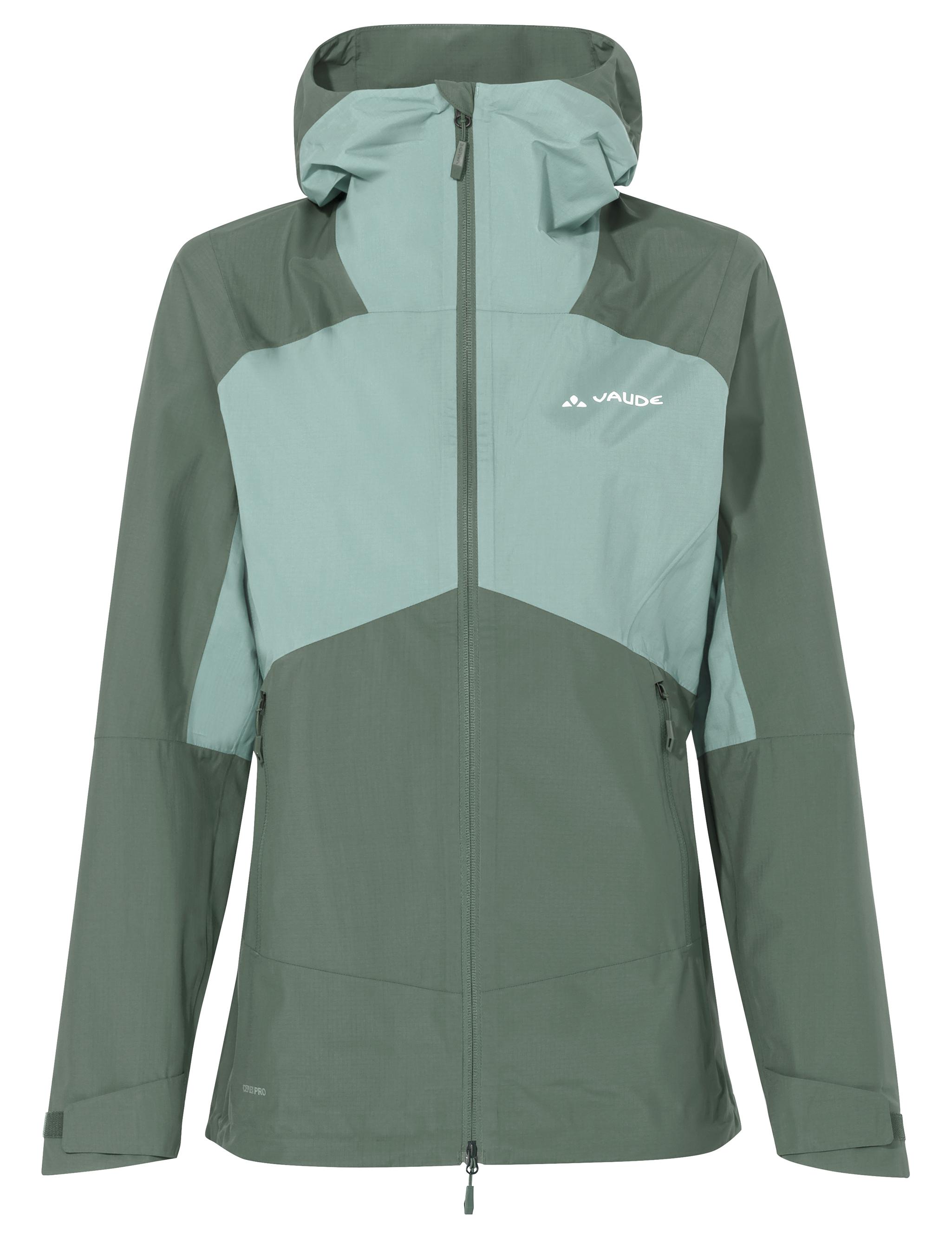 Auch im Sommer gehört bei jeder Bergtour eine Regenjacke ins Gepäck. Sie schützt nicht nur bei plötzlichen Gewittern oder Regenschauern, sondern auch vor frischem Wind am Gipfel und dem Auskühlen während der Pause. Die Simony V 2,5-Lagen-Regenjacke für Damen hält einer Wassersäule von mindestens 20.000 Millimetern stand (JIS L 1092 B) und ist dabei extrem atmungsaktiv. Dank ihrer Konstruktion – Oberstoff und Membran sind fest miteinander verklebt, statt eines zusätzlichen Futters schützt ein Print (halbe Lage) die Membran – ist die Simony V extrem leicht und klein verpackbar. Zusätzlich zur wasserdichten Membran ist der Oberstoff der Simony 2,5-Lagen-Regenjacke für Damen mit Eco Finish PFC-frei wasser- und schmutzabweisend ausgerüstet. Die vorgeformten Ärmel gewähren maximale Bewegungsfreiheit, Kapuze, Armabschlüsse und Bund lassen sich zum Schutz vor Wind eng verschließen. Die Unterarmventilation sorgt dafür, dass die Jacke auch bei wechselnder Anstrengung nicht ständig aus- und angezogen werden muss. Zu guter Letzt bieten zwei Reißverschluss-Taschen ausreichend Platz für Mütze, Handschuhe, Smartphone, Snacks & Co. Das VAUDE Green Shape-Label steht für ein umweltfreundliches, funktionelles Produkt aus nachhaltigen Materialien. Als Mitglied mit Leader Status bei der unabhängigen Organisation Fair Wear engagiert sich VAUDE für faire Arbeitsbedingungen und faire Löhne.