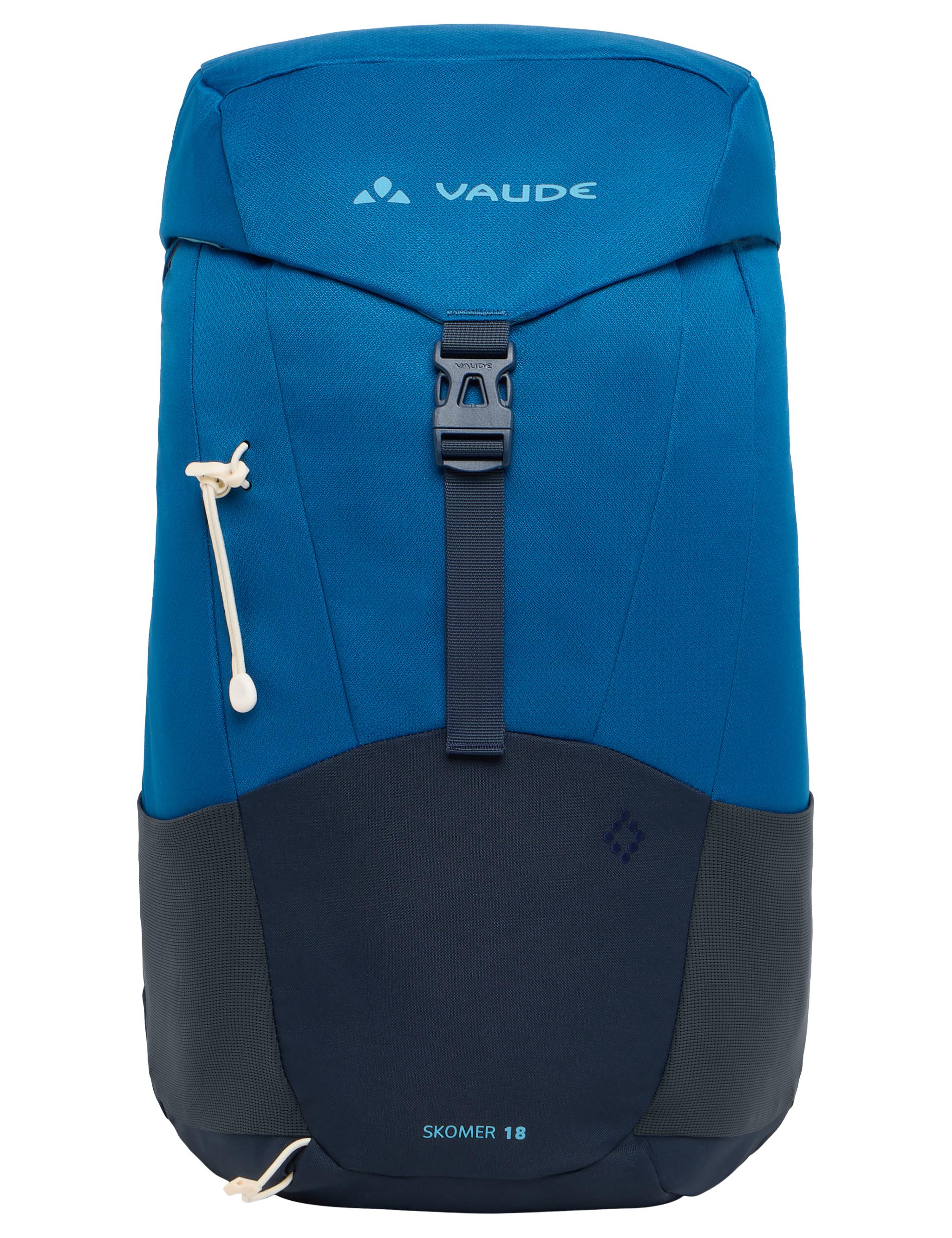 Der Skomer 18 Liter Wanderrucksack für Damen kommt schlicht und aufgeräumt daher, hat aber alles an Bord, was einen zuverlässigen Daypack ausmacht: Abgetrennte Fächer für Smartphone, Sonnenbrille und Karte, zwei elastische Netztaschen an den Seiten, eine Halterung für Wanderstöcke sowie eine Regenhülle, die alternativ als Einkaufstasche oder Wäschebeutel genutzt werden kann. Zudem ist das Außenmaterial des Skomer 18 Damen Rucksacks mit Eco Finish PFC-frei wasser- und schmutzabweisend ausgerüstet. Das Aeroflex 3D System garantiert eine maximale Luftzirkulation zwischen Rucksack und Rücken, die speziell an die weibliche Anatomie angepassten Schultergurte sorgen für einen tollen Tragekomfort. Der Brustgurt mit Schlauchhalterung und der Hüftriemen halten den Rucksack in jeder Situation stabil am Körper. Das VAUDE Green Shape-Label steht für ein umweltfreundliches, funktionelles Produkt aus nachhaltigen Materialien. Als Mitglied mit Leader Status bei der unabhängigen Organisation Fair Wear engagiert sich VAUDE für faire Arbeitsbedingungen und faire Löhne.