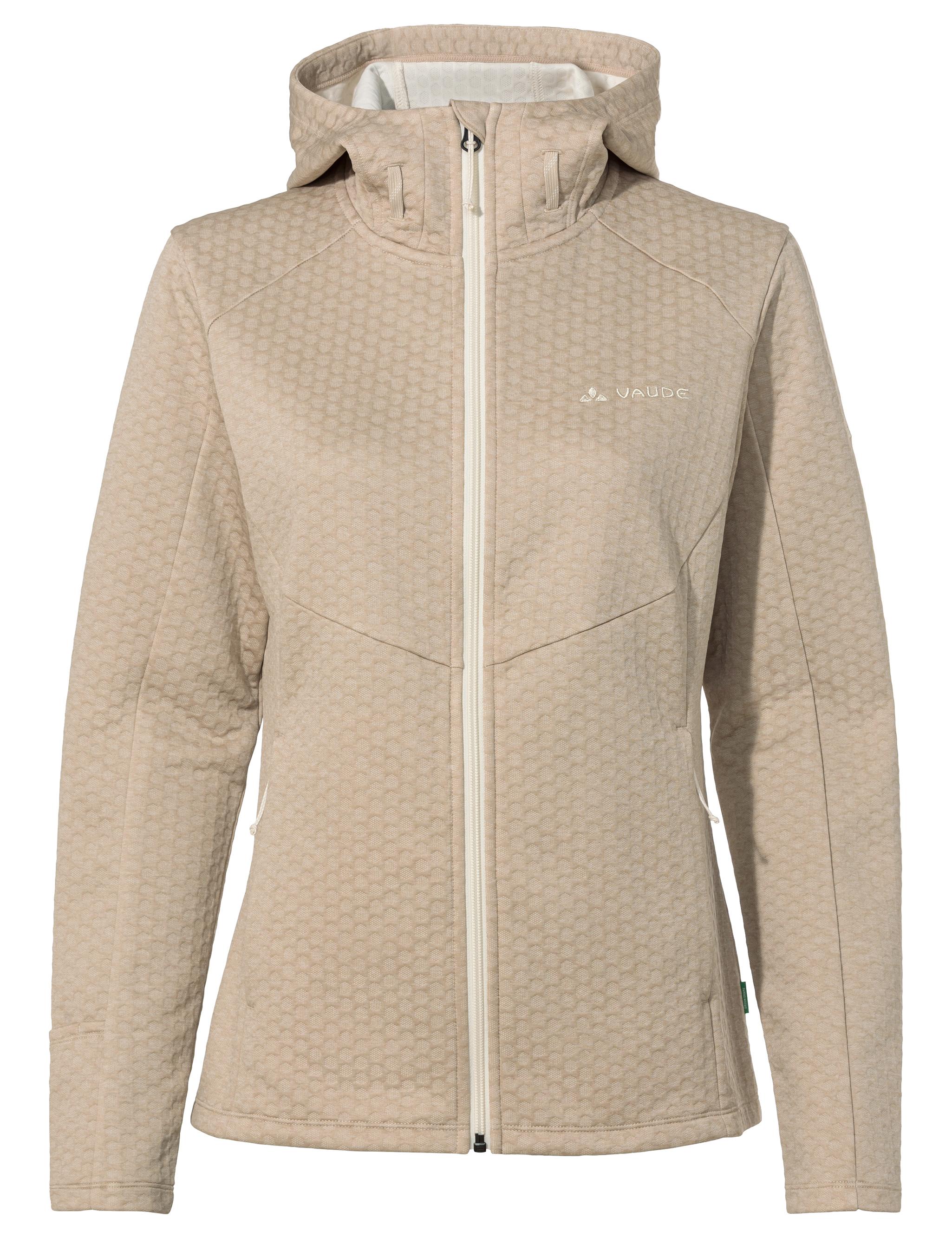 Ob solo oder als wärmende Zwischenschicht: Der Skomer Hoodie für Damen ist immer eine gute Wahl. Das Material hält warm und ist gleichzeitig atmungsaktiv. Die strukturierte Innenseite erzeugt Wärme und transportiert Feuchtigkeit schnell nach außen, was für mehr Tragekomfort sorgt. Das Fleece ist pflegeleicht und schnelltrocknend und damit ein perfekter Begleiter auf mehrtägigen Touren. Die Kapuze kann bei böigem Wind im Gebirge schnell übergezogen werden. Unter einer wasserdichten Wetterschutzjacke ist der Skomer Hoodie zudem der ideale Midlayer in der Übergangszeit. Zwei Fronttaschen mit Reißverschluss bieten Platz für ein Handy, einen Geldbeutel oder sonstige Kleinutensilien. Das VAUDE Green Shape-Label steht für ein umweltfreundliches, funktionelles Produkt aus nachhaltigen und bluesign® zertifizierten Materialien.