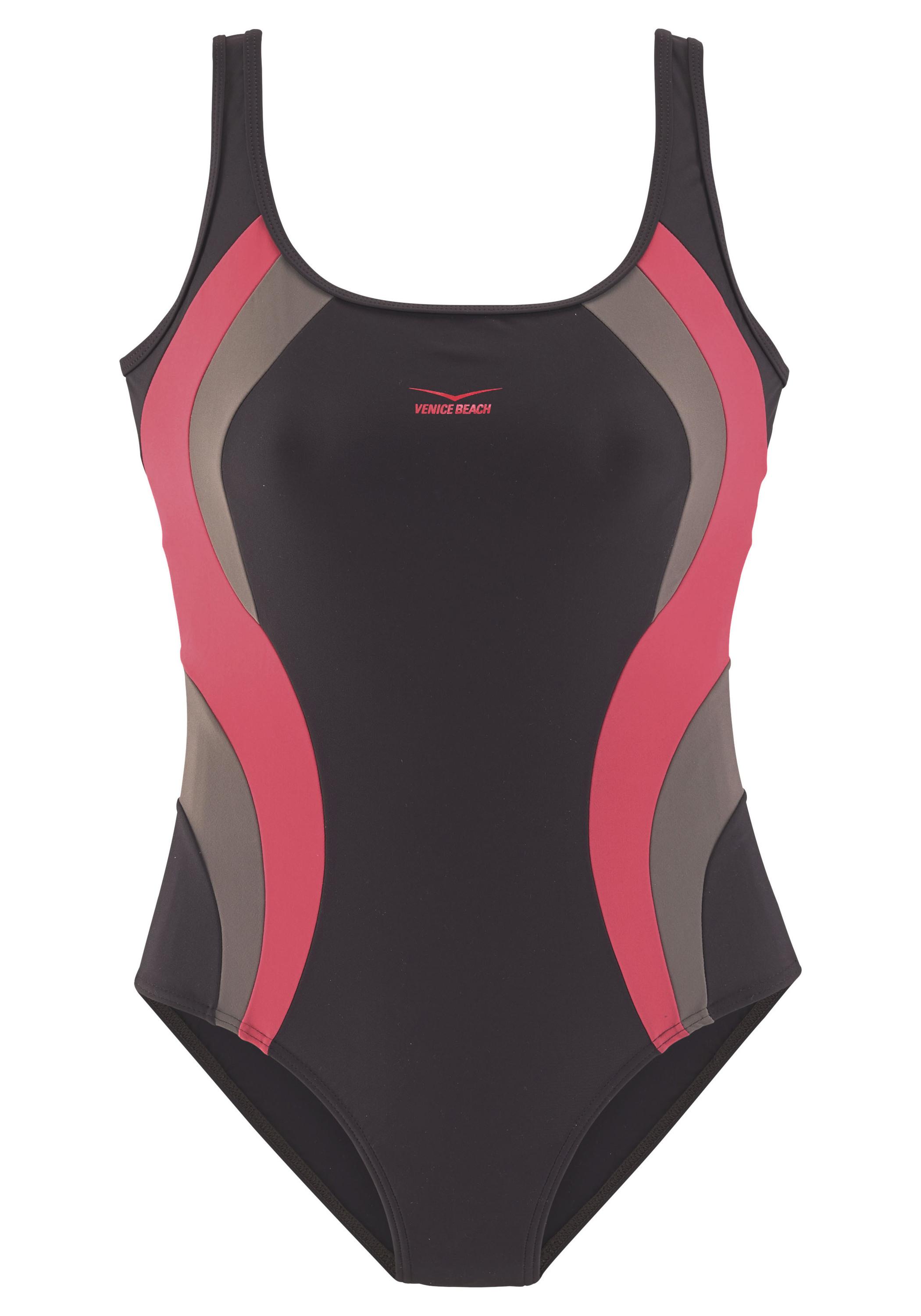Im Sportiven Look mit Kontrasteinsätzen. Shaping-Einsatz und Unterbrustgummi für perfekten Halt und eine tolle Figur.