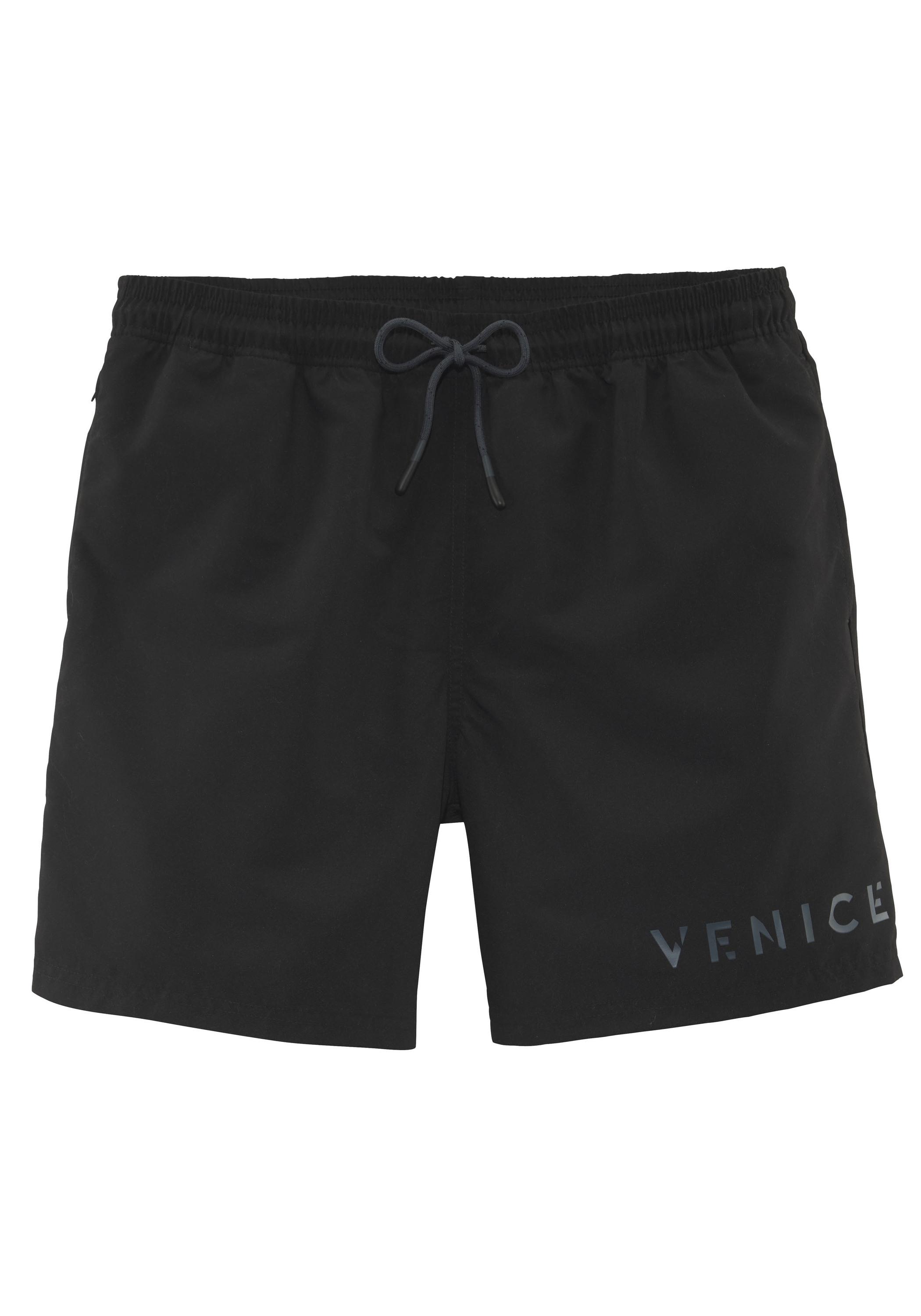In trendiger Unifarbe: Badeshorts von Venice Beach. Logodruck vorn und hinten auf dem Bein und Kordel am elastischen Bund, beides kontrastfarben. Seitliche Eingrifftaschen. Schnell trocknendes Material.