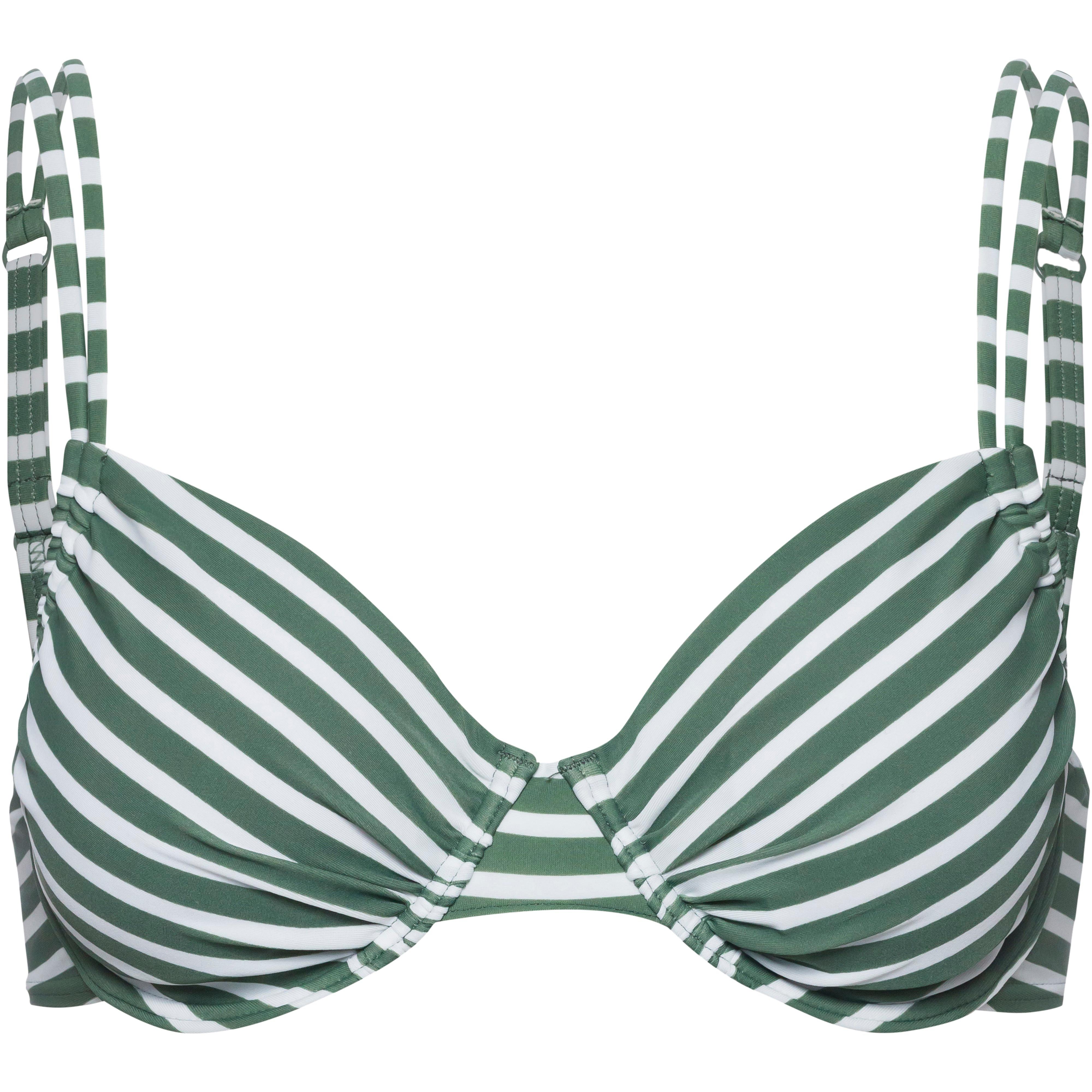Seitlich regulierbar. Herausnehmbare Cups. Verstellbare Doppelträger. In 2 Designs: mit Blumenprint oder komplett im Streifenlook.