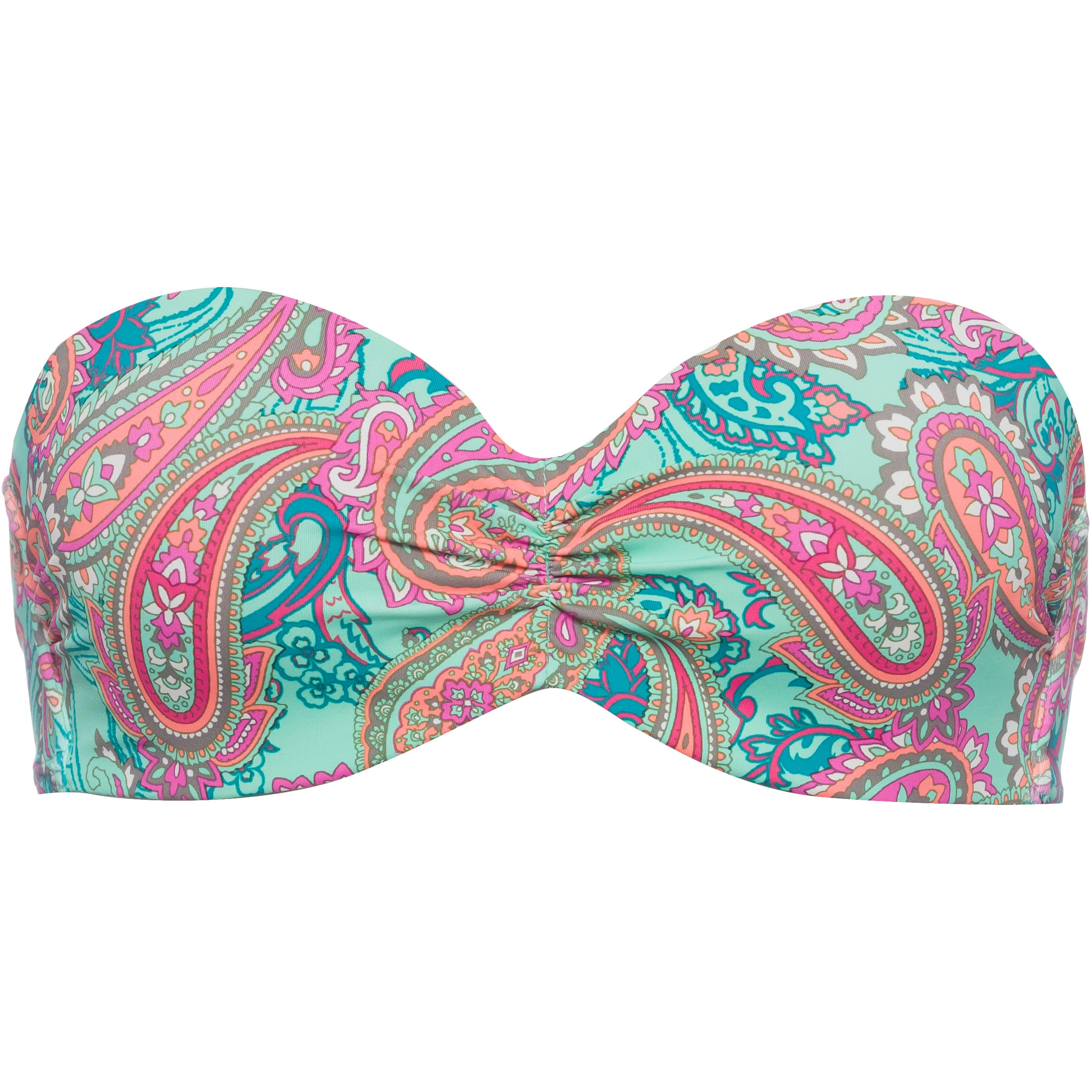 Bikini Oberteil in Bandeau Passform, mit Bügel für optimalen Halt; abnehmbare Träger im Nacken zum Binden; Raffung in der vorderen Mitte; Klick Verschluss im Rückenbereich; wattierte Cups; Mix and Match kompatibel; Recyclingmaterial; Material I 84% Polyamid, 16% Elastan, Material II 92% Polyester, 8% Elastan.