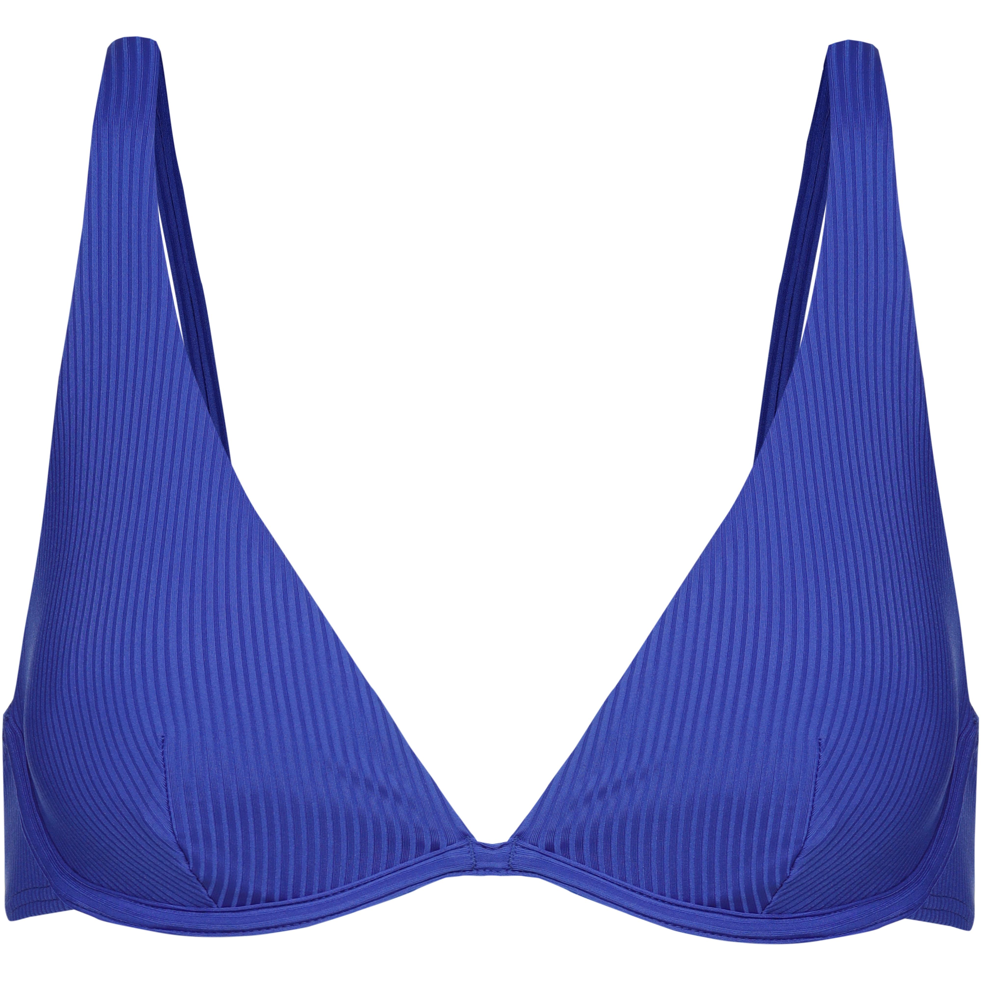 Unifarbenes Bikini-Oberteil aus elastischem Material mit gerippter Struktur; Cups mit Bügeln und herausnehmbaren Polstern; schmale, verstellbare Träger; Clip-Verschluss am Rücken; Obermaterial 86% Polyamid, 14% Elastan; Futter 90% Polyester, 10% Elastan.