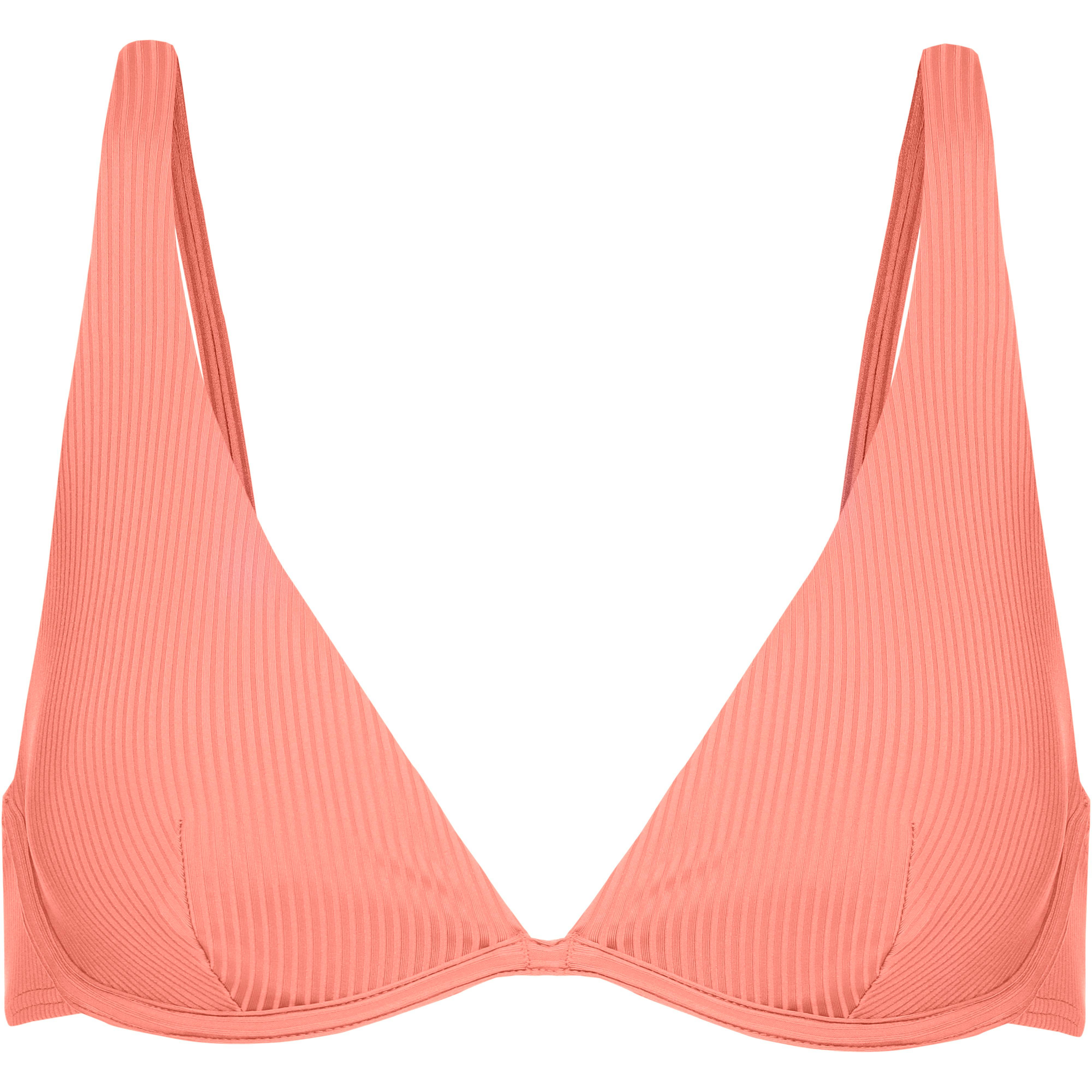Unifarbenes Bikini-Oberteil aus elastischem Material mit gerippter Struktur; Cups mit Bügeln und herausnehmbaren Polstern; schmale, verstellbare Träger; Clip-Verschluss am Rücken; Obermaterial 86% Polyamid, 14% Elastan; Futter 90% Polyester, 10% Elastan.
