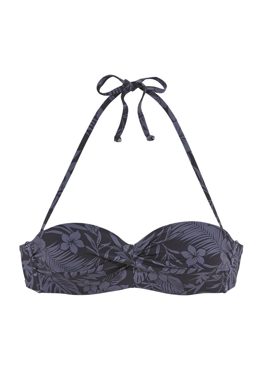 Bügel-Bandeau-Bikinitop von Venice Beach. Floraler Alloverprint in monochromer Optik. Träger zum Abnehmen. Herausnehmbare Kissen bei Cup A und B. Hochwertige Qualität mit recyceltem Polyamid.