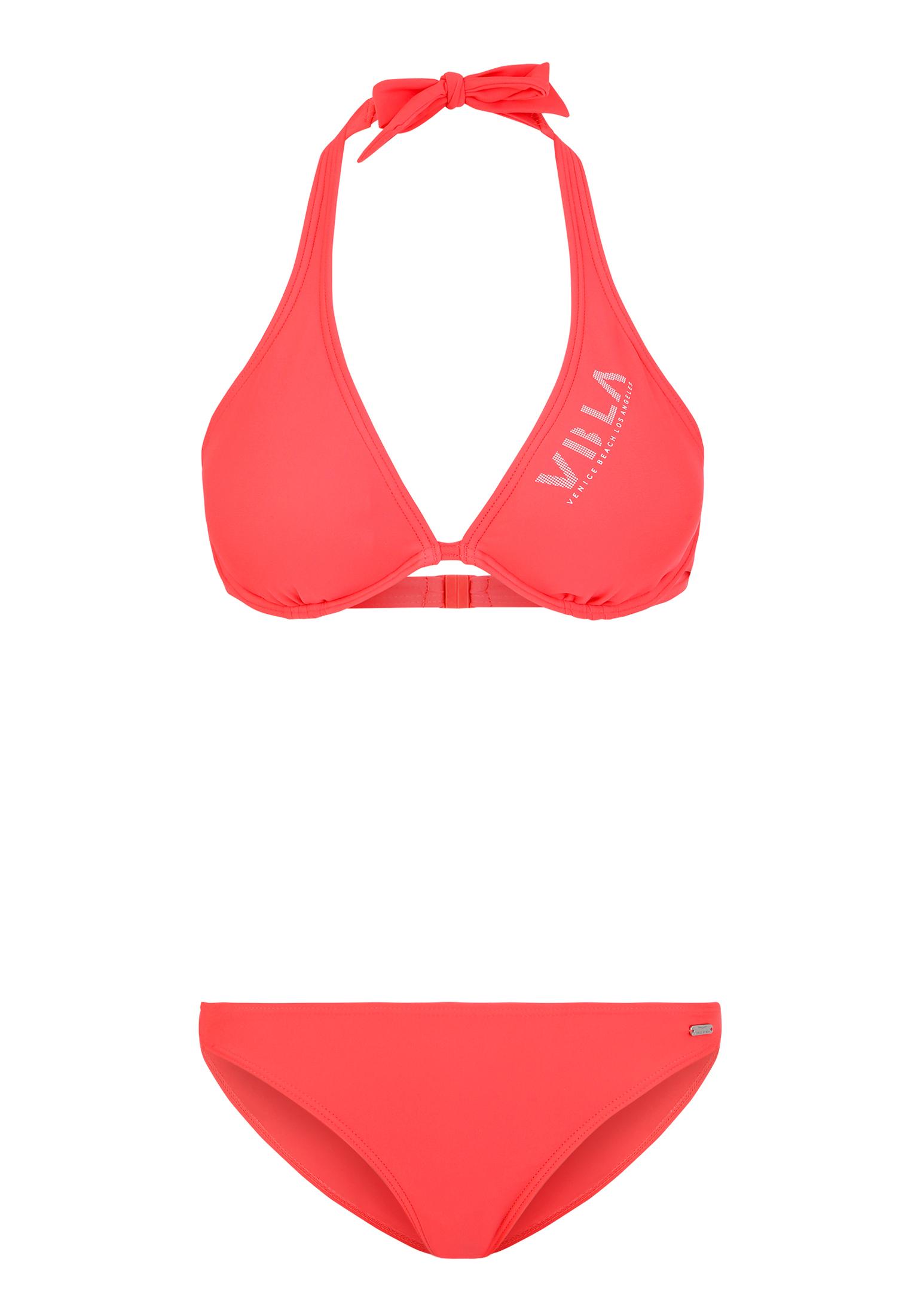 Stylischer Bügelbikini von Venice Beach. Mit großem Print und eingearbeiteten Bügeln. Das Top ist im Nacken zu binden und im Rücken zu schließen. Mit herausnehmbaren Cups. Hose mit schmalen Seitennähten und kleinem Emblem. Trageangenehme Qualität.