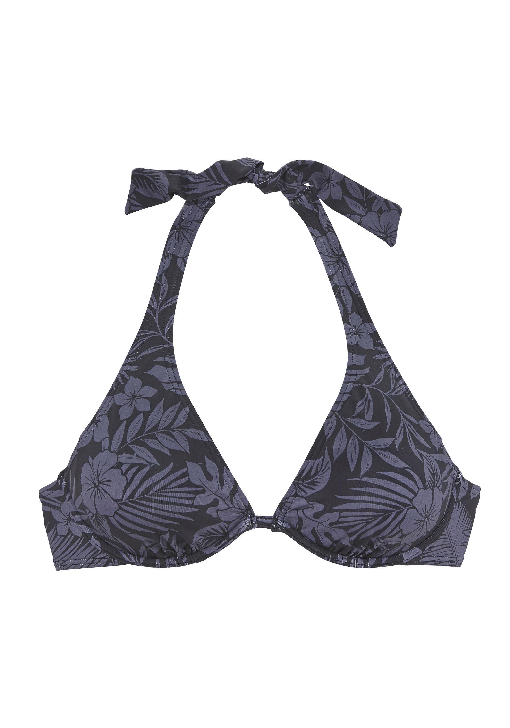 Bügel-Bikinitop von Venice Beach mit floralem Alloverprint – jedes Teil ein Unikat. Softcups zum Herausnehmen. Neckholder zum Binden. Seitenstege im Rücken mit Verschluss. Aus der Mix-Kini-Serie. Weiche Qualität mit recyceltem Polyamid.