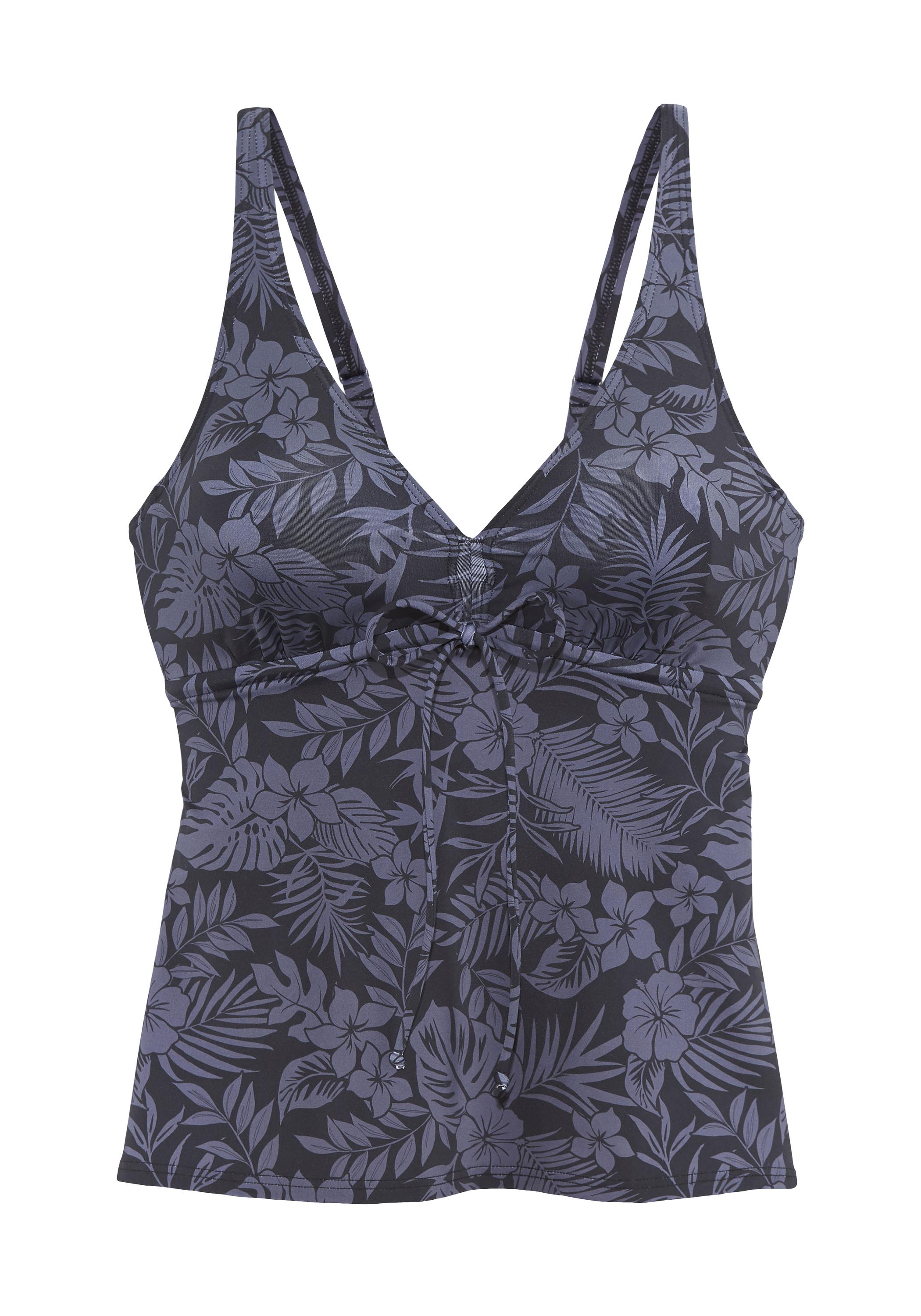 Bügel-Tankinitop von Venice Beach. Floraler Alloverprint in monochromer Optik. Cups mittig regulierbar und mit herausnehmbaren Einlagen. Aus der Mix-Kini-Serie. Weiche Qualität mit recyceltem Polyamid.