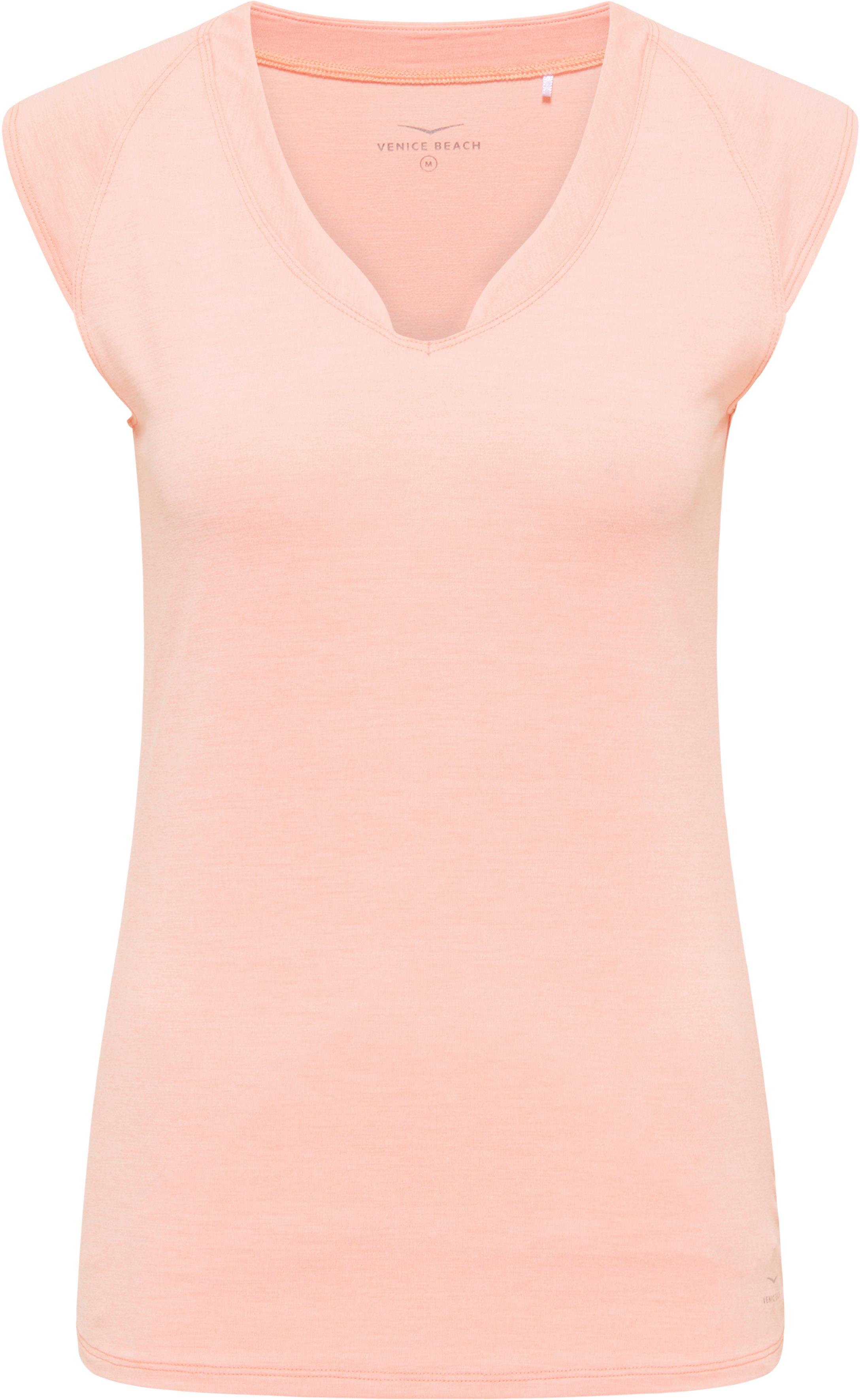 Meliertes Funktionsshirt mit kurzen, angeschnittenen Ärmeln; V-Ausschnitt mit Blende; mit schnelltrocknender und feuchtigkeitsableitender drytivity®-Funktion; weiche Qualität; schmale Passform; Material 84% Polyester, 16% Elastan.