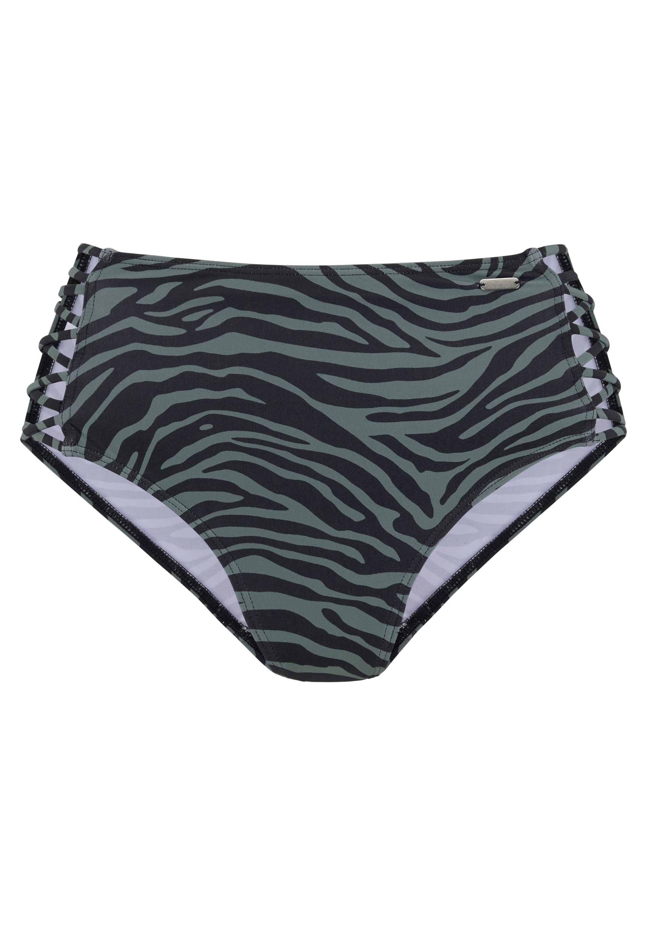 Bikinihose von Venice Beach. Trendstarkes Design mit Alloverprint. Jedes Teil ein Unikat. High-waist-Schnitt mit extrabreiten Seitenstegen. Seitliche Schnüroptik. Aus der Mix-Kini-Serie. Trageangenehmes Material mit recyceltem Polyamidanteil.