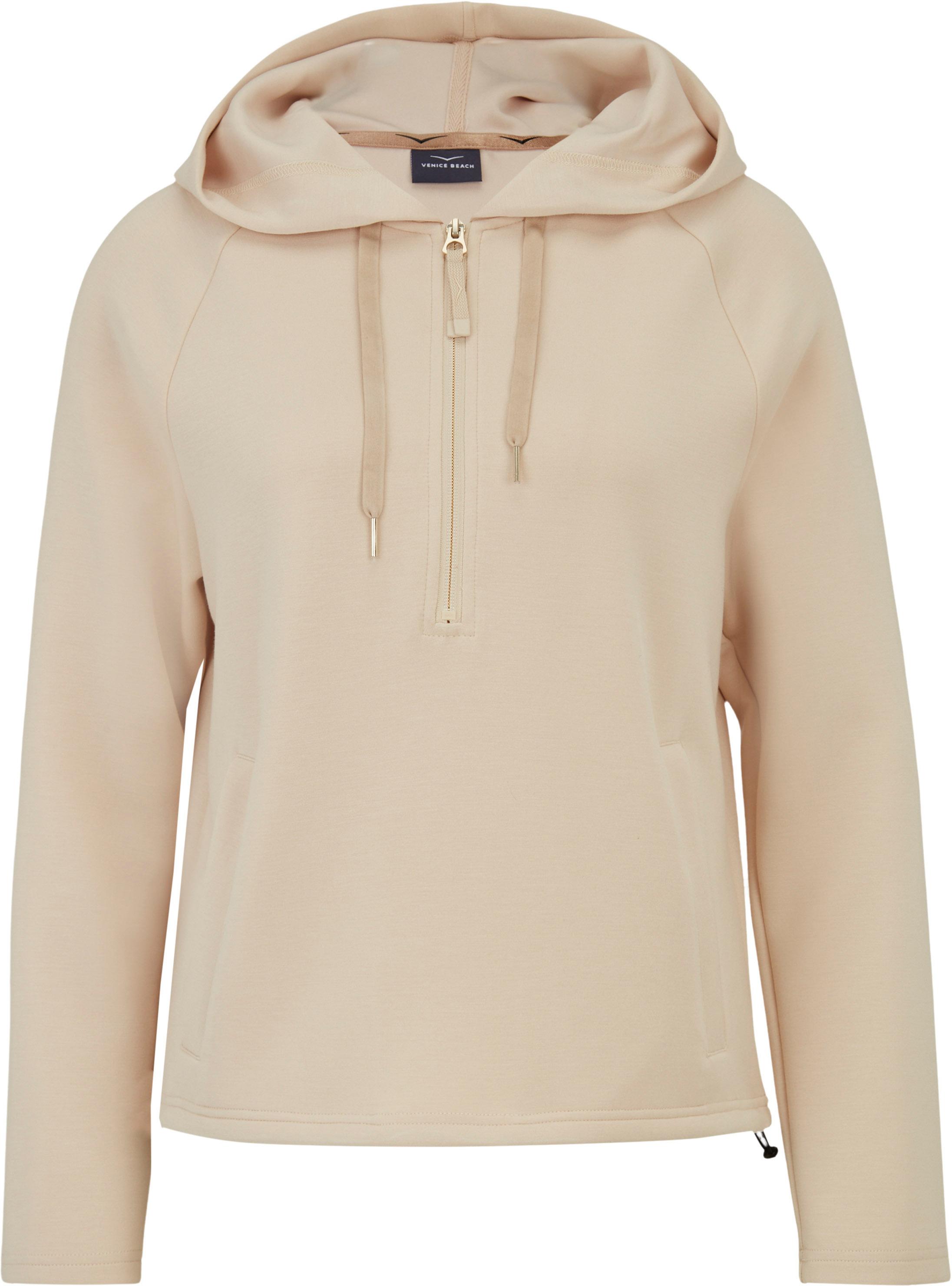 Hoodie mit Half-Zip und fester Kapuze mit breitem Kordelzug; 2 Eingrifftaschen gerader Schnitt; Logoprint am Arm; Material 50% Modal, 43% Polyester, 7% Elastan.