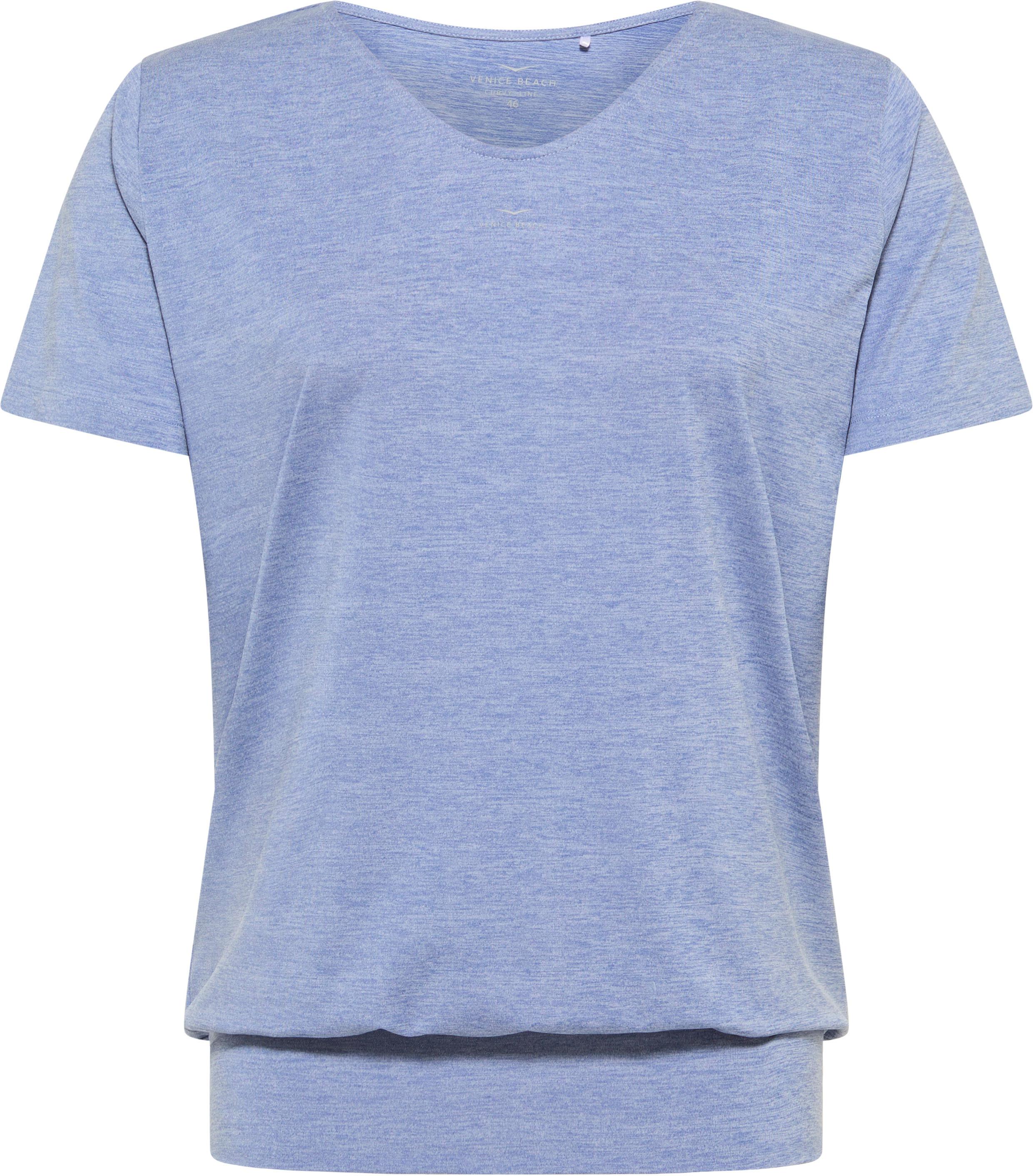 Funktions-T-Shirt mit abgerundetem V-Ausschnitt und enganliegendem Saum; elastisches, leicht meliertes Material; feuchtigkeits- und thermoregulierend; dezentes Logodetail; lockere Passform; Material 84% Polyester, 16% Elastan.