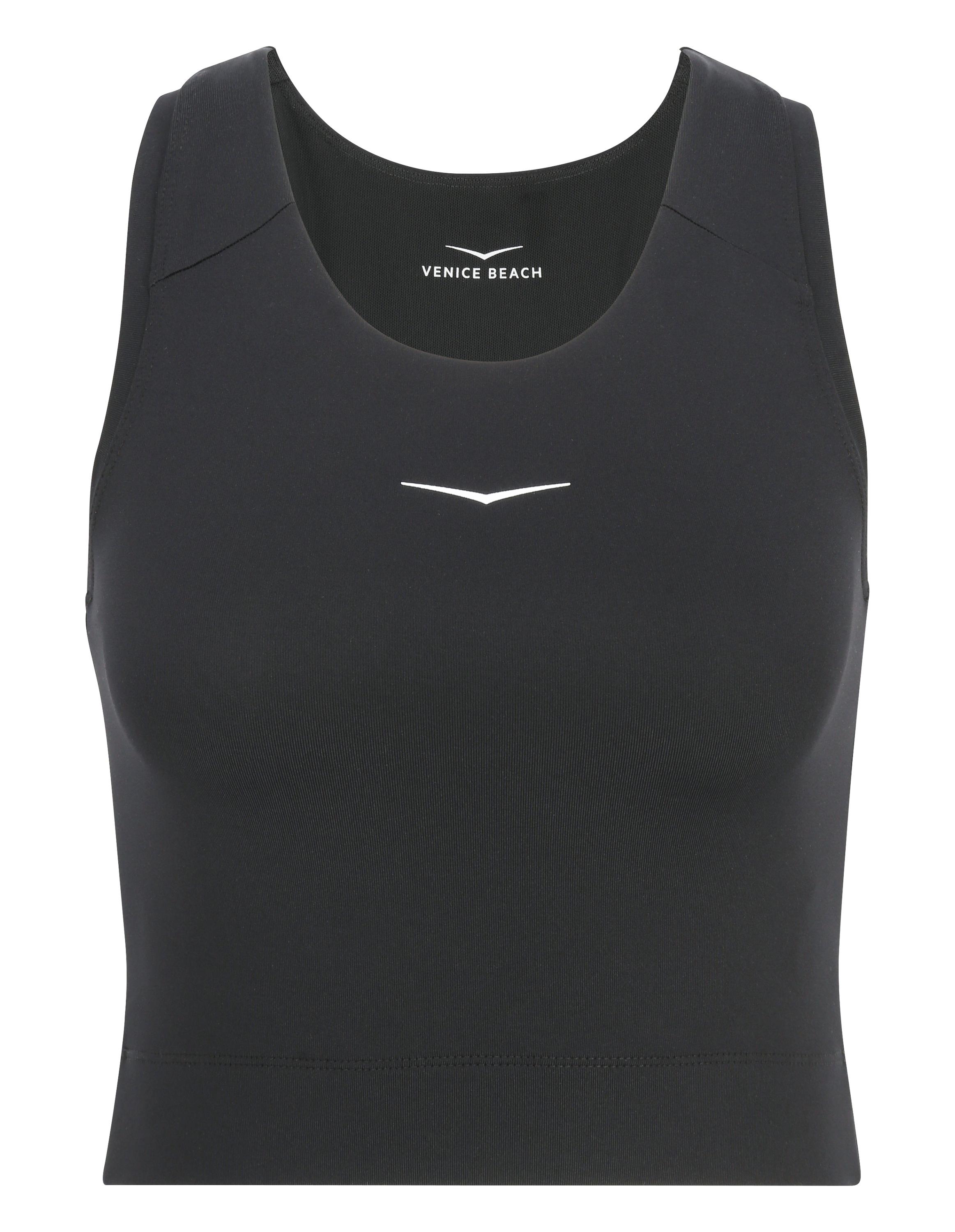 Schönes feminines Design trifft auf hochwertiges Material: hier überzeugt das kurze Sporttop EDITHA! Das kurze Sporttop EDITHA vereint funktionale und stylische Elemente für uneingeschränkte Performance bei jeder sportlichen Herausforderung. Unser Sporttop für Damen ist feel-well-Mode ohne Kompromisse hinsichtlich der Funktionalität. Durch den engen Schnitt passt sich das Sporttop optimal an Ihren Körper an und macht alle Bewegungen mit. Durch das hochwertige Material fühlt sich der Stoff super angenehm auf der Haut an und garantiert optimalen Tragekomfort, auch vor und nach einem anstrengenden Training. Die lässige Activewear von VENICE BEACH ist für alle Frauen, die das Leben lieben und das auch zeigen wollen. Es sorgt für ein selbstbewusstes Auftreten nicht nur beim Sport. Durch die stylischen Elemente können Sie das Sporttop auch im Alltag oder in der Freizeit tragen. Ob im Urlaub, auf dem Weg zum Bäcker oder bei der Shoppingtour mit Ihrer besten Freundin: Mit dem Sporttop für Damen sind Sie immer modisch on the move.