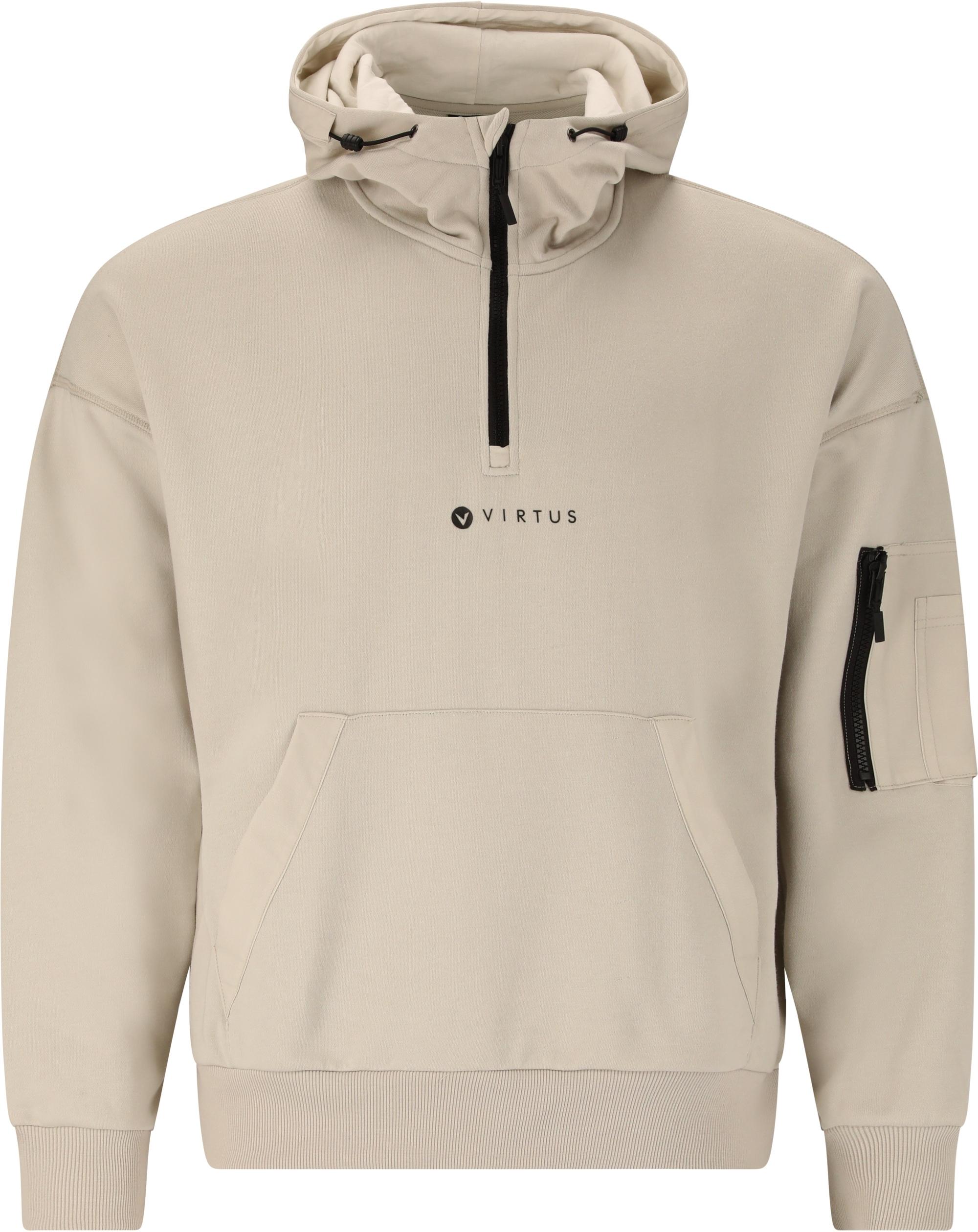 Mit diesem funktionalen Sweatshirt von Virtus bist du top ausgestattet! Es ist angenehm weich aus 65% Polyester und 35% Baumwolle hergestellt und fällt normal aus. Neben seiner bequemen Passform bietet dieser smarte Hoodie eine Bauchtasche, eine einstellbare Kapuze sowie eine doppelte Ärmeltasche mit einem Reißverschlussfach und einem offenen Fach. Der Halbreißverschluss mit Kinnschutz erlaubt ein einfaches An- und Ausziehen sowie Belüften des Modells. Der simple und sportliche skandinavische Look bildet das Tüpfchen auf dem i!