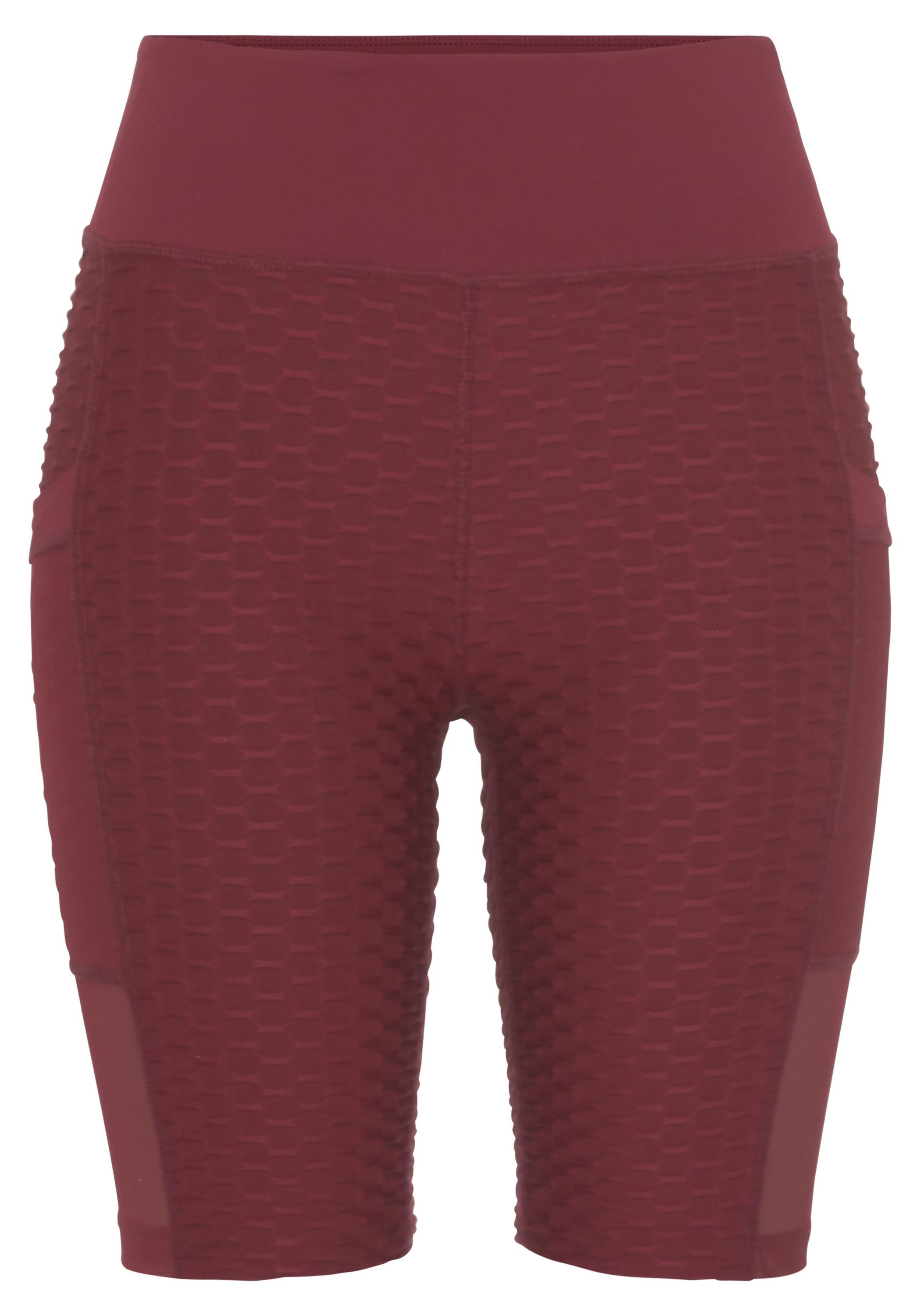 Funktions-Bikershorts in Wabenoptik mit breitem Bund mit innenliegender Tasche. An den Beinen seitlich mit Mesh-Einsätzen, links mit Handytasche. Aus 86% Polyester, 14% Elasthan.