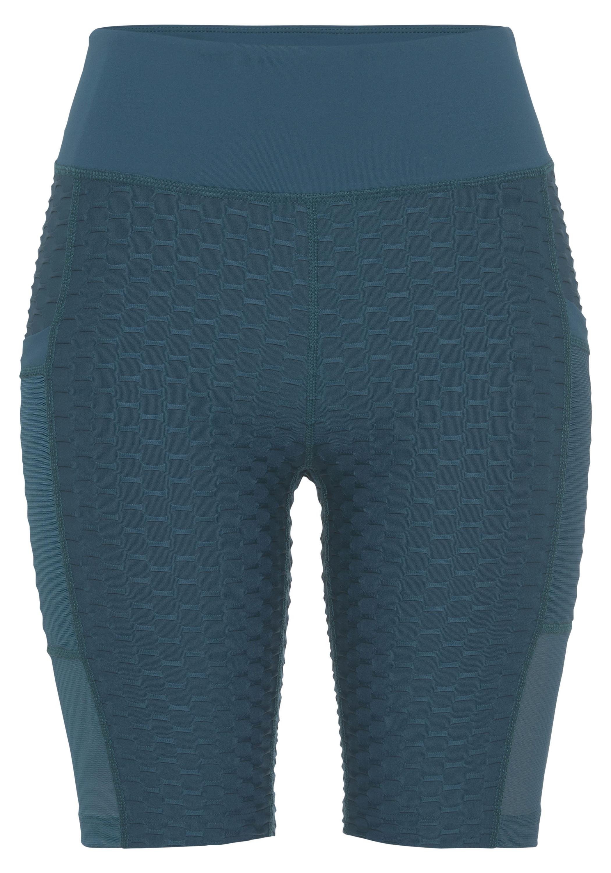 Funktions-Bikershorts in Wabenoptik mit breitem Bund mit innenliegender Tasche. An den Beinen seitlich mit Mesh-Einsätzen, links mit Handytasche. Aus 86% Polyester, 14% Elasthan.