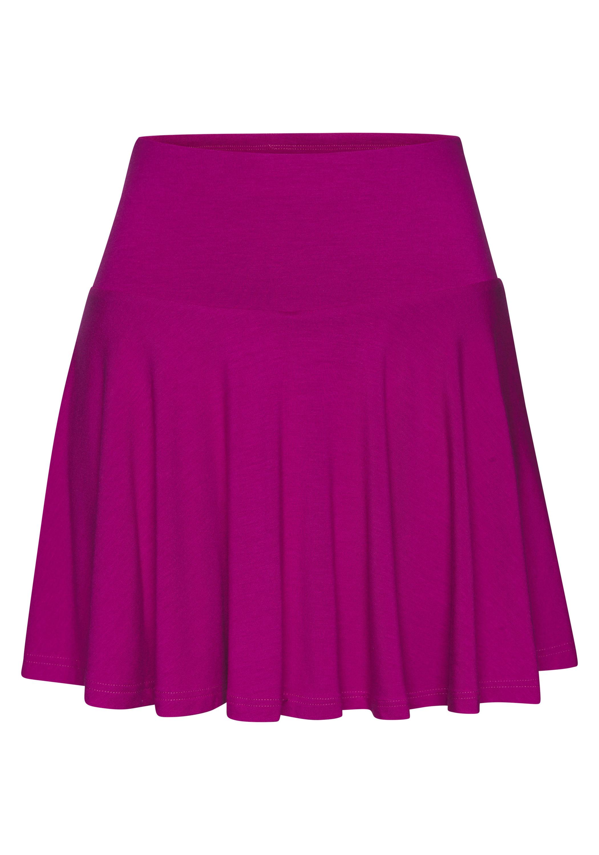 Kurzer, schön schwingender Tellerrock von Vivance Active mit integrierten Shorts für ein sicheres Gefühl. Bequemer, breiter Gummibund. Vielseitig kombinierbar für verschiedene Looks. Weich fließende, elastische Viskosequalität.