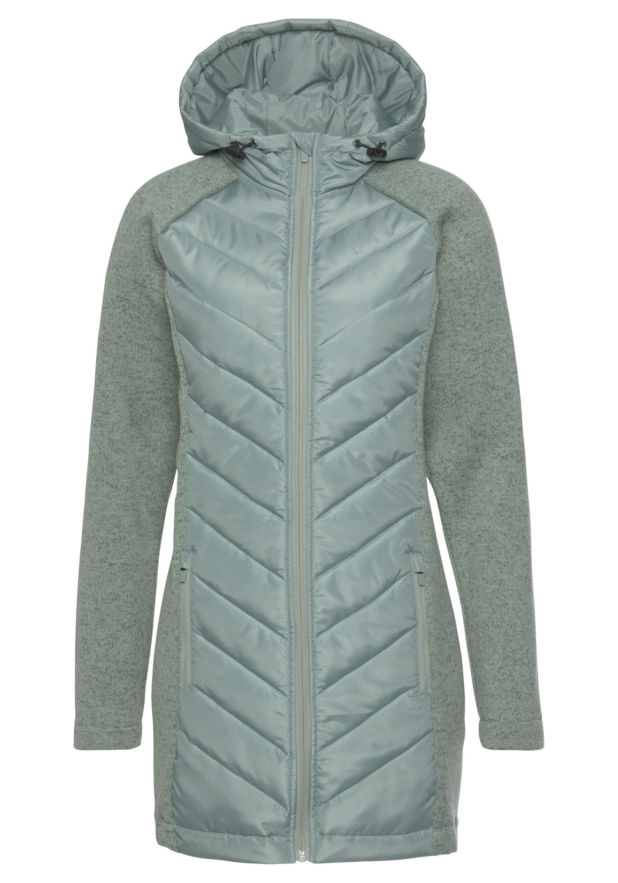 Outdoor-Steppjacke von Vivance. Kapuze verstellbar. Mit integriertem Tunnelzug und praktischen Kordelstoppern. Seitliche Eingrifftaschen mit Reißverschluss. Durchgehender Reißverschluss. Schmaler, gerader Schnitt. Perfekter Materialmix: wärmende Steppware aus 100% Polyester und kuscheliger Strickfleece aus100% Polyester.