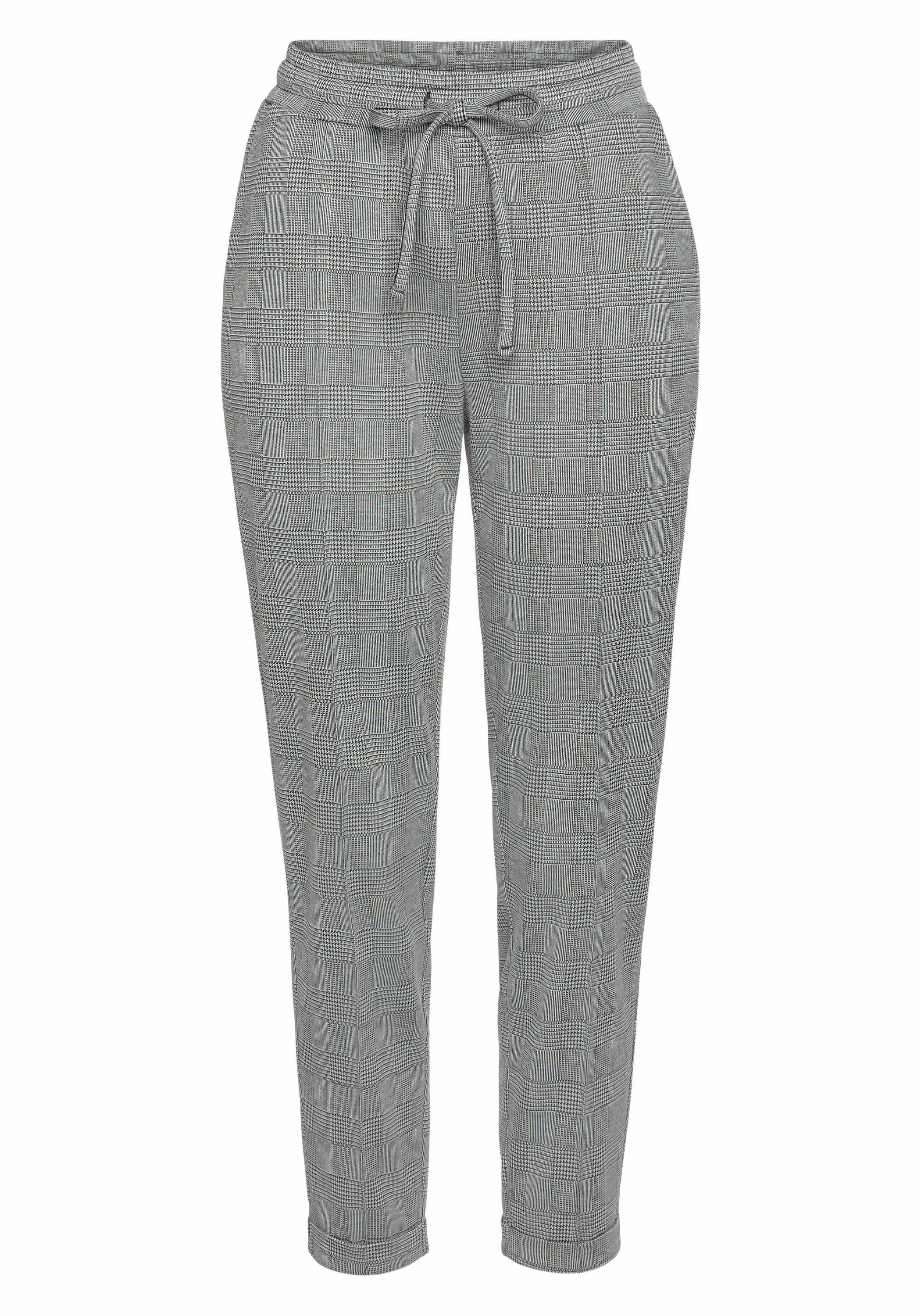 Schlupfhose von VIVANCE im Karodesign. Bequeme Form mit elastischem Bund und Tunnelzug. Seitliche Eingrifftaschen und Ziertaschen hinten. Umschlag am Saum. Innenbeinlänge ca. 68 cm. Aus 79% Polyester, 19% Viskose, 2% Elasthan.