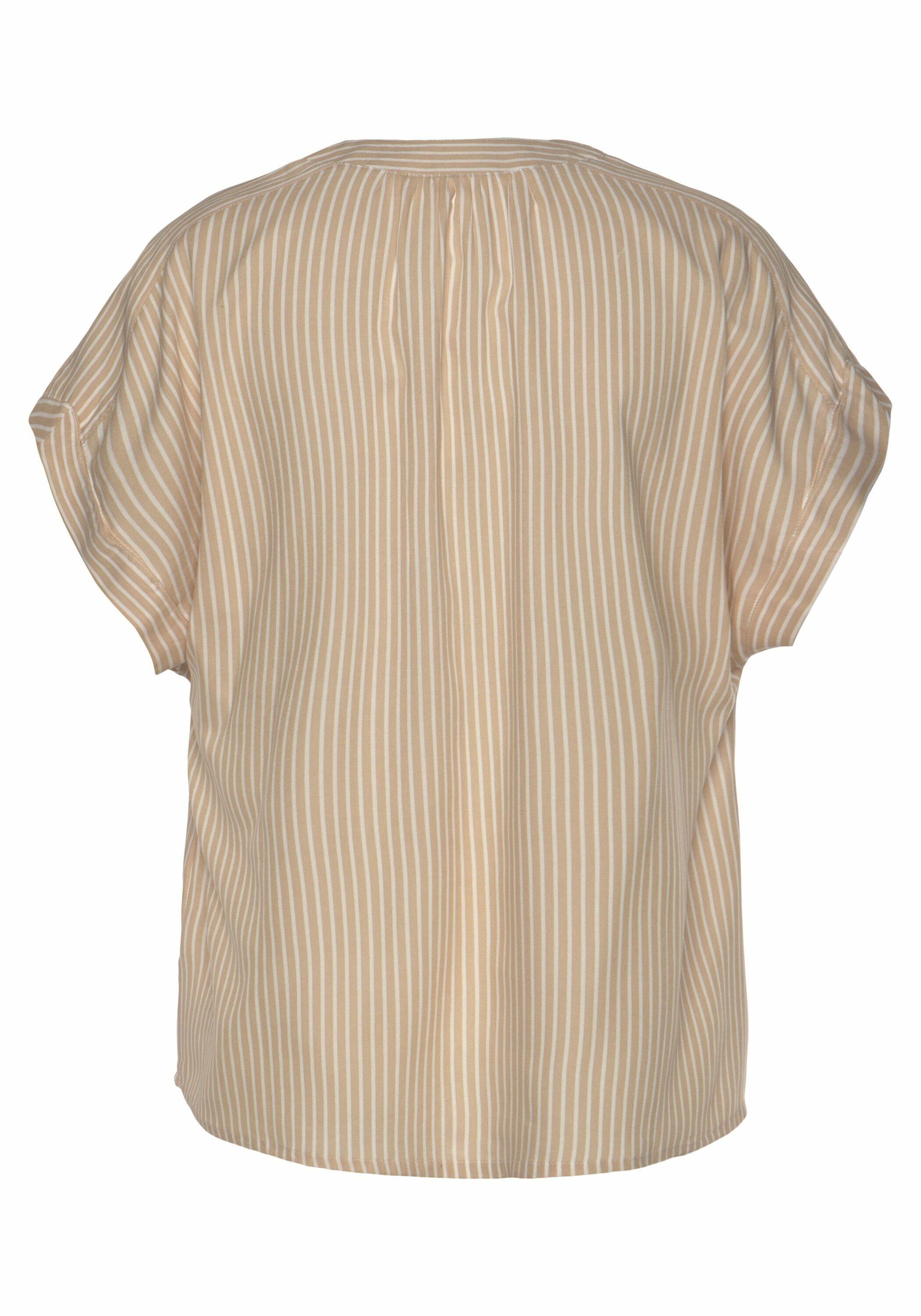 Bluse von Vivance mit vertikalen Streifen. V-Ausschnitt mit breiter Blende. Kurze, weite Ärmel mit fixiertem Umschlag. Länge ca. 66 cm. Supersofte, gewebte Qualität aus100% Viskose.