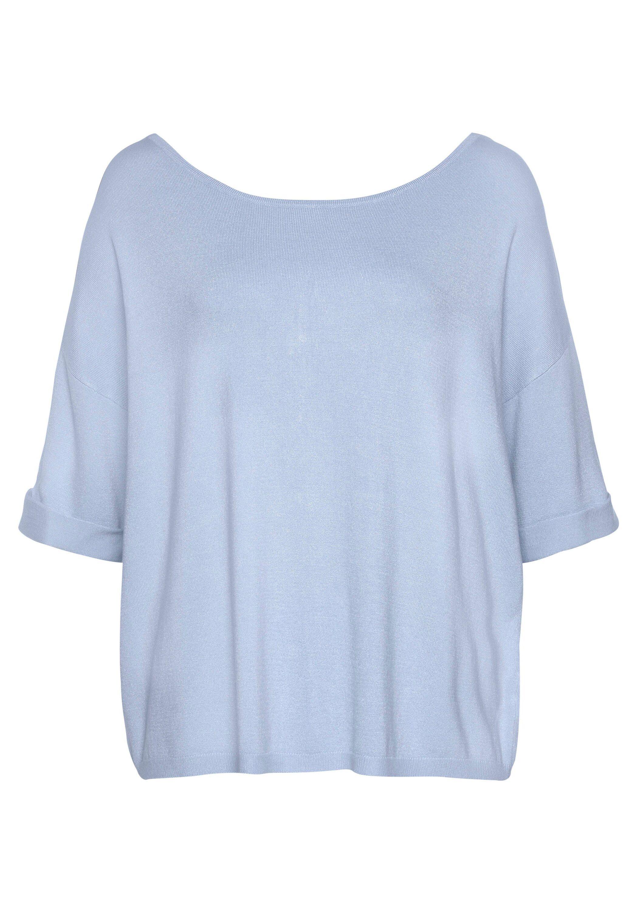 Angesagter Kurzarmpullover von Vivance. Raffinierter Ärmelaufschlag. Rückseite mit Knopfleiste. Lässiger Look durch überschnittene Schultern und weite Passform. Vielseitig kombinierbar. Weiche Feinstrickqualität mit hohem Viskoseanteil.