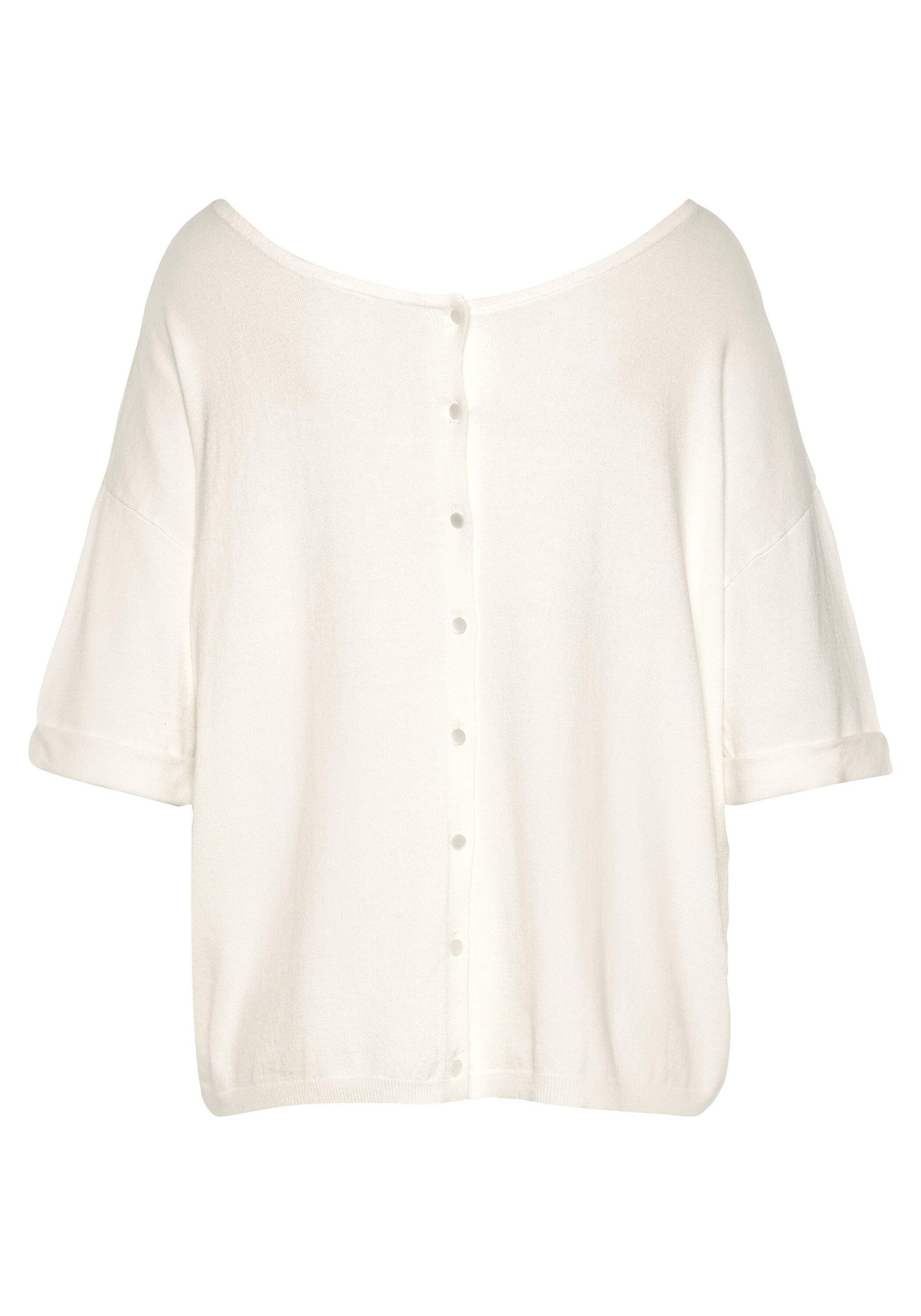 Angesagter Kurzarmpullover von Vivance. Raffinierter Ärmelaufschlag. Rückseite mit Knopfleiste. Lässiger Look durch überschnittene Schultern und weite Passform. Vielseitig kombinierbar. Weiche Feinstrickqualität mit hohem Viskoseanteil.