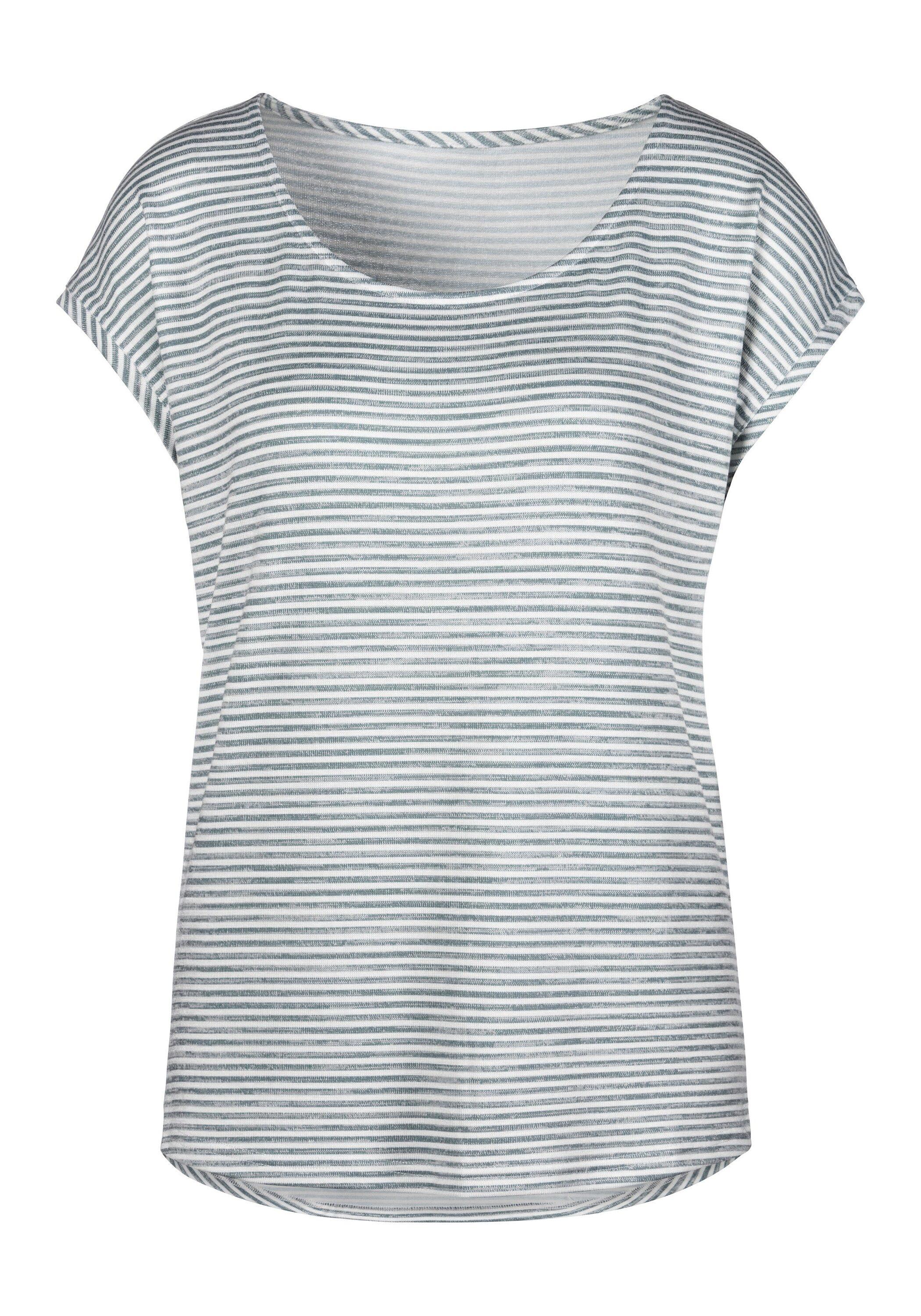 T-Shirt von Vivance mit modischem Streifen-Design und 3/4-Ärmeln. Flauschig warme Viskose-Mischung aus 55% Polyester, 42% Viskose, 3% Elasthan.
