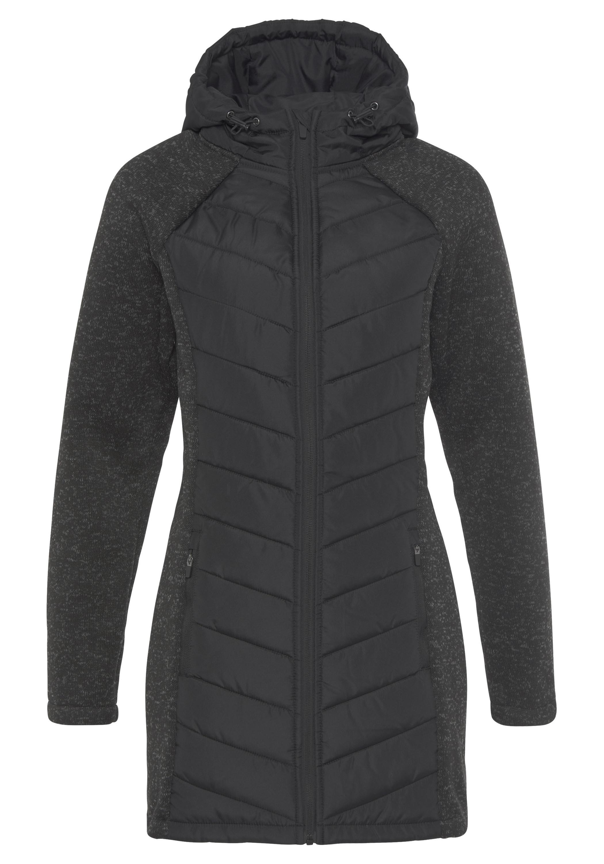 Outdoor-Steppjacke von Vivance. Kapuze verstellbar. Mit integriertem Tunnelzug und praktischen Kordelstoppern. Seitliche Eingrifftaschen mit Reißverschluss. Durchgehender Reißverschluss. Schmaler, gerader Schnitt. Perfekter Materialmix: wärmende Steppware aus 100% Polyester und kuscheliger Strickfleece aus100% Polyester.