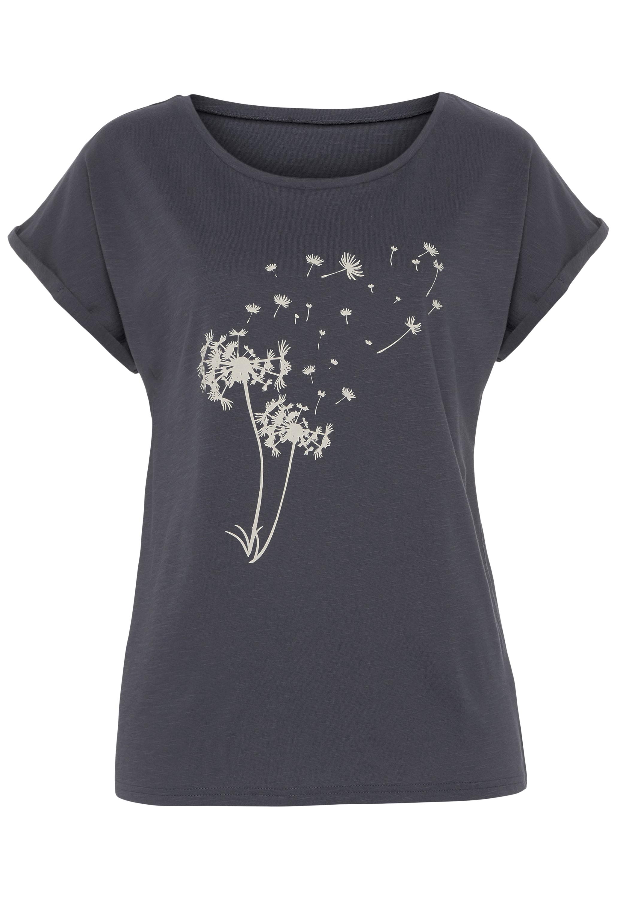 Locker fallendes T-Shirt von Vivance mit kunstvollem Frontdruck und weitem Rundhalsausschnitt. Fixierter Umschlagsaum an den Ärmeln. Einsatz von Baumwolle, die die Initiative Cotton made in Africa unterstützt.