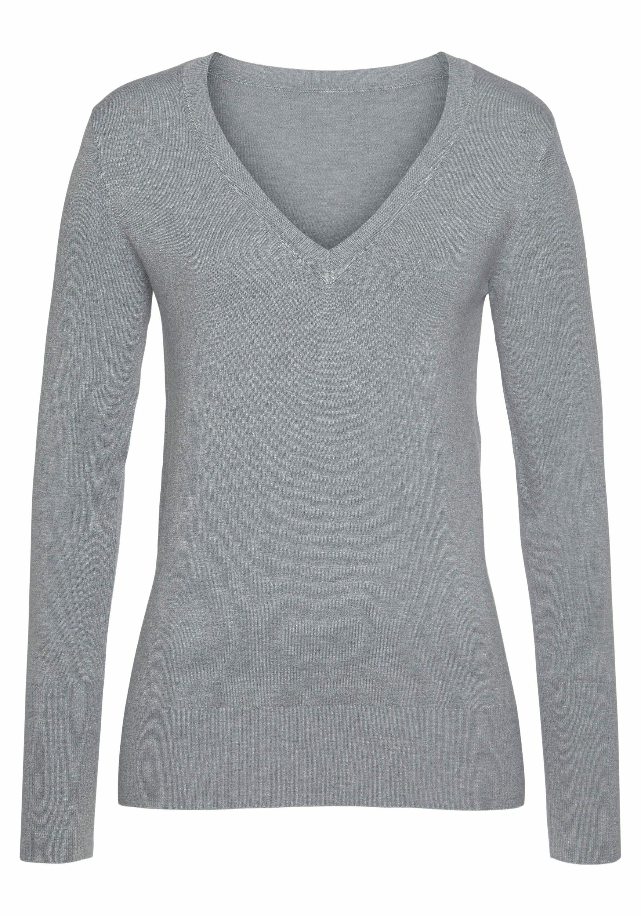 Pullover von VIVANCE mit tiefem V-Ausschnitt und langen, schmalen Ärmeln. Rippbündchen an den Abschlüssen. Länge ca. 60 cm. Nachhaltige Qualität aus 83% Viskose, 15% Polyamid, 2% Elasthan.