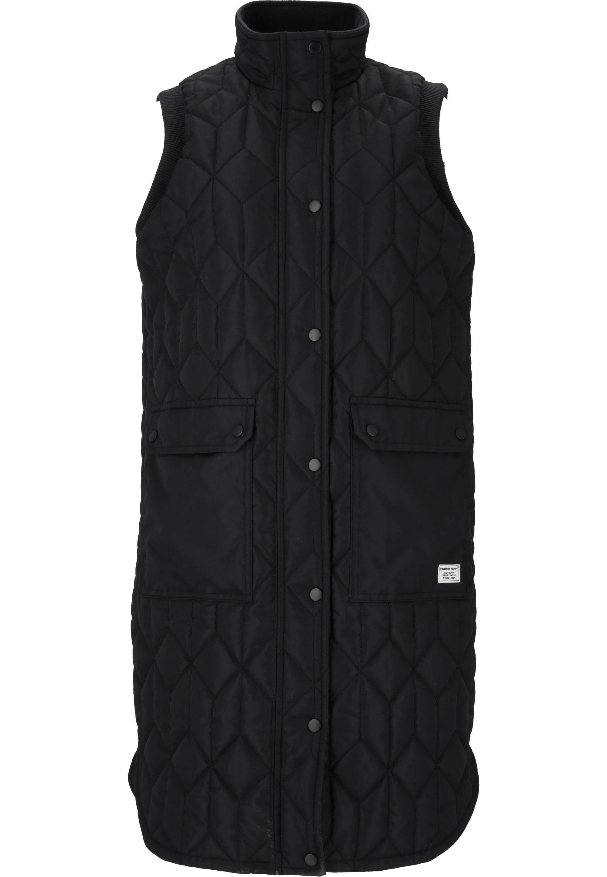 Diese lange Weste aus dem Hause WEATHER REPORT ist ein ideales Produkt für Alltag und Urban Outdoor oder für Laufen & Walking und wurde für Damen entworfen. Sie schließt mit einem Zwei-Wege-Reißverschluss hinter einer Knopfleiste. Optisch präsentiert sich die Weste in einfarbigem Design und hat praktische Pattentaschen zu bieten.