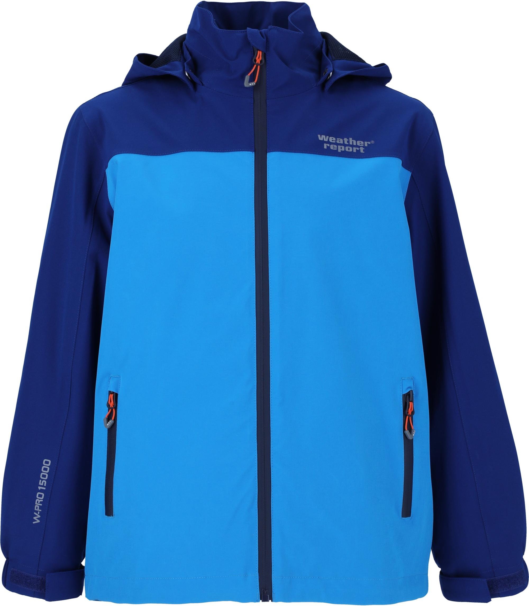 Mit der Funktionsjacke 'Borise Jr.' für Kinder von WEATHER REPORT aus Dänemark kannst du deine Outdooraktivitäten bei jedem Wetter genießen. Das sportliche Design aus Skandinavien unterstreicht deinen angesagten Look. Mit der atmungsaktiven und gleichermaßen wasser- und winddichten Funktionsjacke mit PU-Beschichtung kannst du jedem Regen und Wetter dank einer 15.000 mm Wassersäule trotzen. Die Jacke ist aus 90% Polyester und 10% Elasthan angefertigt sowie mit PFC-freiem PU beschichtet. Die verschweißten Nähte machen sie zu 100% wind- und wasserdicht. Der Funktionsstretch aus Polyester und Elasthan gibt dir bei deinen Moves eine gute Bewegsfreiheit. Weitere Highlights sind der hochabschließende Kragen, eine regulierbare Schirmkapuze, Reißverschlusstaschen seitlich, ein YKK-Markenreißverschluss, Klettverschlüsse an den Ärmeln und ein reflektierender Logoprint. All das macht die Funktionsjacke für Kinder von WEATHER REPORT zu einem tollen Begleiter bei deinen Outdooraktivitäten.