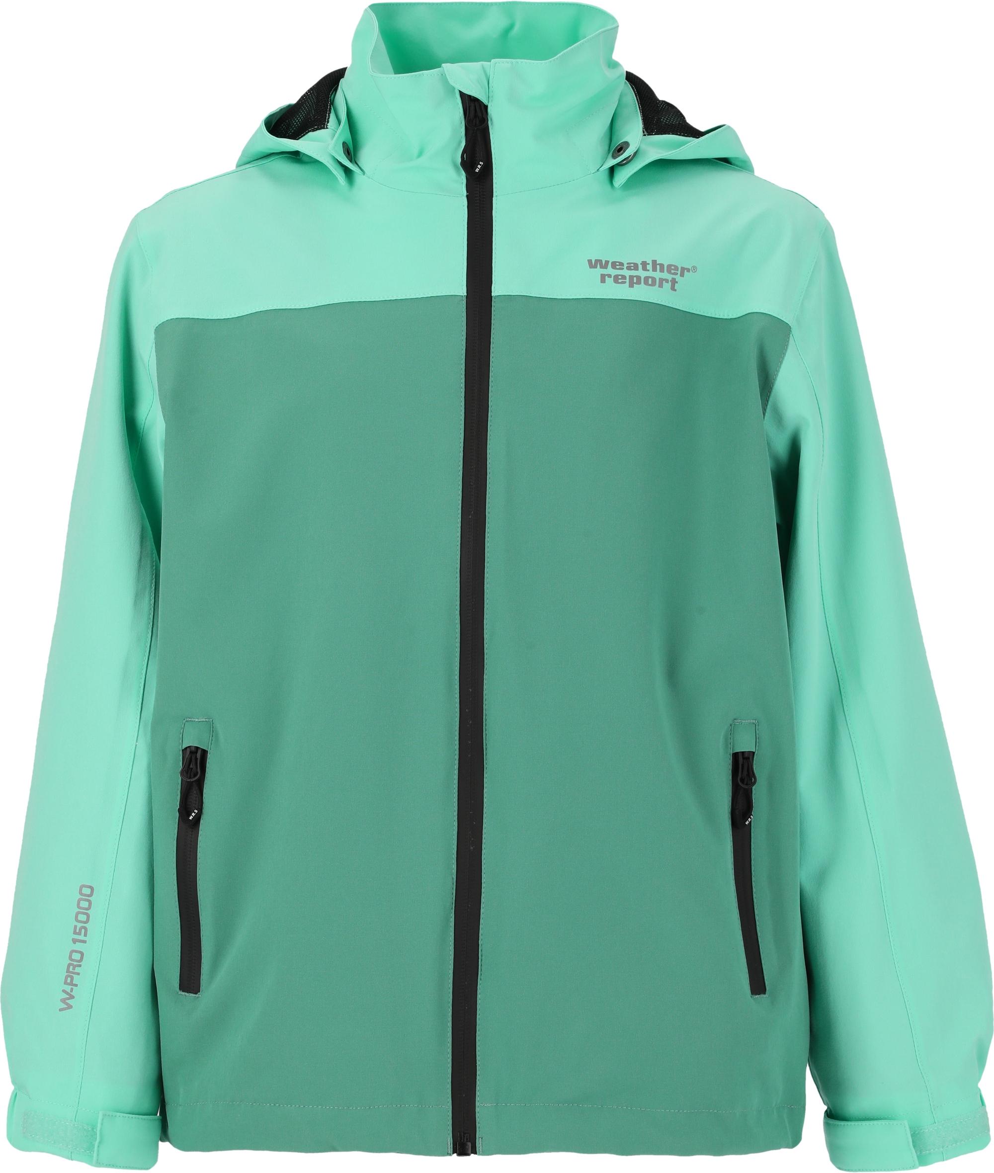 Mit der Funktionsjacke 'Borise Jr.' für Kinder von WEATHER REPORT aus Dänemark kannst du deine Outdooraktivitäten bei jedem Wetter genießen. Das sportliche Design aus Skandinavien unterstreicht deinen angesagten Look. Mit der atmungsaktiven und gleichermaßen wasser- und winddichten Funktionsjacke mit PU-Beschichtung kannst du jedem Regen und Wetter dank einer 15.000 mm Wassersäule trotzen. Die Jacke ist aus 90% Polyester und 10% Elasthan angefertigt sowie mit PFC-freiem PU beschichtet. Die verschweißten Nähte machen sie zu 100% wind- und wasserdicht. Der Funktionsstretch aus Polyester und Elasthan gibt dir bei deinen Moves eine gute Bewegsfreiheit. Weitere Highlights sind der hochabschließende Kragen, eine regulierbare Schirmkapuze, Reißverschlusstaschen seitlich, ein YKK-Markenreißverschluss, Klettverschlüsse an den Ärmeln und ein reflektierender Logoprint. All das macht die Funktionsjacke für Kinder von WEATHER REPORT zu einem tollen Begleiter bei deinen Outdooraktivitäten.