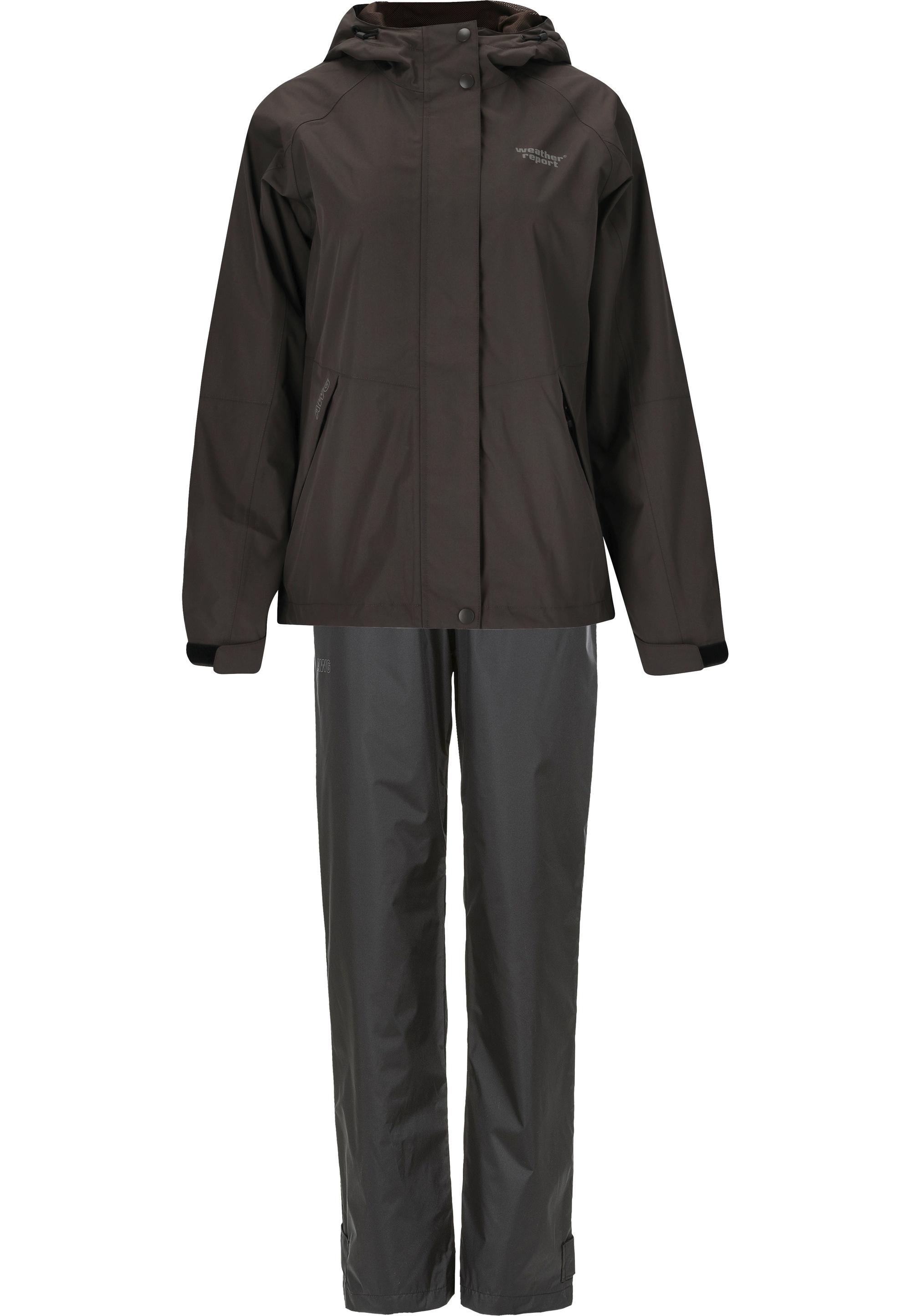 Der Regenanzug Carlene für Damen von WEATHER REPORT überzeugt mit optimaler Funktion, hohem Tragekomfort und einem klaren, zeitlosen Design aus Dänemark. Er besteht aus einer Jacke und einer Hose und ist ideal für vielfältige Outdooraktivitäten bei Regen. Die wasserdichte W-PRO-Membran erreicht eine Wassersäule von 10.000 mm. Die PU-Beschichtung schützt zuverlässig vor Wasser und Wind und bleibt gleichzeitig atmungsaktiv. Verschweißte Nähte sorgen für zusätzliche Dichtigkeit. Die hochwertige TPU-Beschichtung ist frei von PFC-Materialien. Die leicht tailliert geschnittene Jacke verfügt über eine verstellbare Kapuze, einen YKK-Markenreißverschluss und einen hoch abschließenden Stehkragen für optimalen Schutz. Seitliche Reißverschlusstaschen, Klettverschlüsse an Ärmeln und Beinenden sowie ein weiches Innenfutter der Taschen erhöhen den Komfort, auch bei kühleren Temperaturen. Ein integrierter Kinnschutz verdeckt den Reißverschluss und sorgt für angenehmes Tragen. Reflektierende Elemente erhöhen die Sichtbarkeit bei Dunkelheit. So wird der Regenanzug Carlene zum verlässlichen Begleiter bei jedem Wetter!